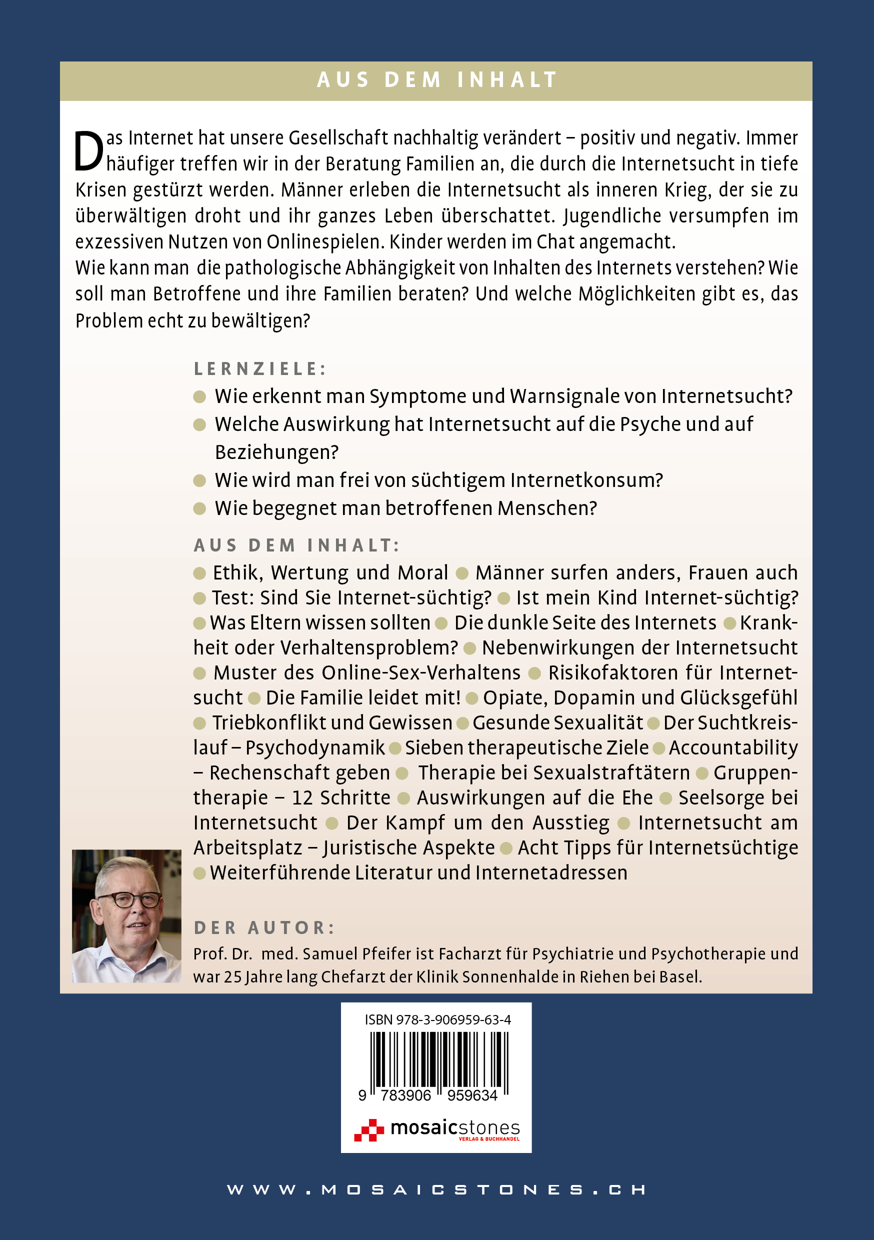 Das Internet hat unsere Gesellschaft nachhaltig verändert - positiv und negativ. Immer häufiger treffen wir in der Beratung Familien an, die durch die Internetsucht in tiefe Krisen gestürzt werden. Männer erleben die Internetsucht als inneren Krieg, der sie zu überwältigen droht und ihr ganzes Leben überschattet. Jugendliche versumpfen im exzessiven Nutzen von Onlinespielen. Kinder werden im Chat angemacht.Wie kann man die pathologische Abhängigkeit von pornografischen Inhalten des Internets verstehen? Wie soll man Betroffene und ihre Familien beraten? Und welche Möglichkeiten gibt es, das Problem echt zu bewältigen?