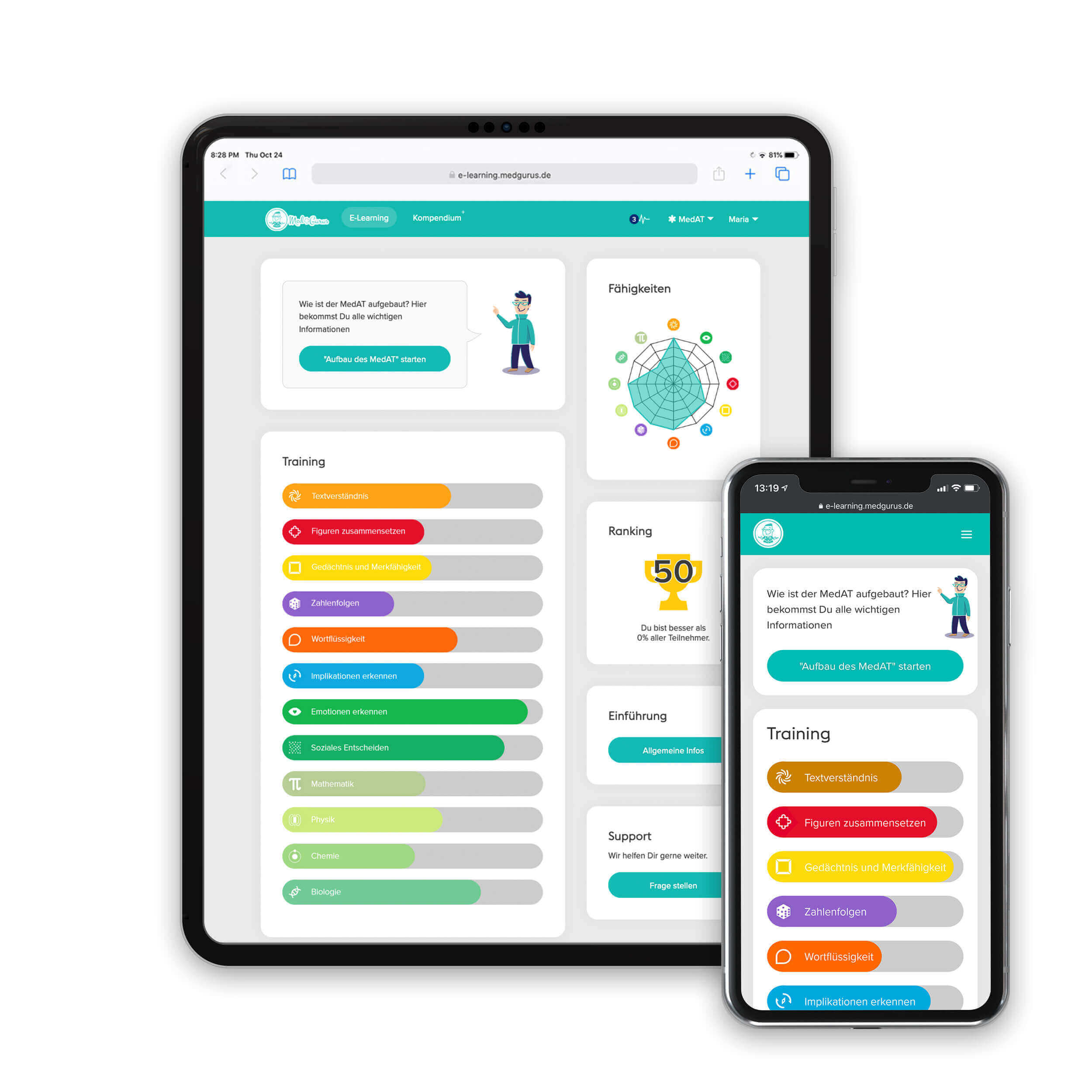 Beim Kauf des Erfolgspakets erhältst Du einen Zugang zu unserer MedAT E-Learning Plattform. Das MedAT E-Learning ist die ideale Ergänzung zur Vorbereitung mit den Büchern und bietet folgende Vorteile: