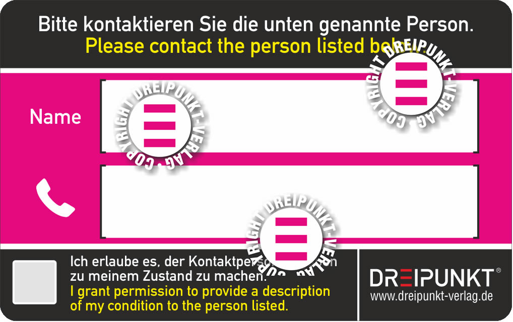 | Schlagworte | Corona • Covid-19 • Dreipunkt • Dreipunkt-Verlag • EHEC • Epidemie • Ernstfall • Hochwasser • Hochwasservorsorge • Info-Tafel • Katastrophe • Katastrophenschutz • Notfall • Notfallkarte • Pandemie • Quarantäne • SARS • Survival • Unfall • Unfälle • Unwetter • Verhalten bei Gefahren • Virus • Vorbereitung • Vorbeugen • Vorsorge • Vorsorgen |