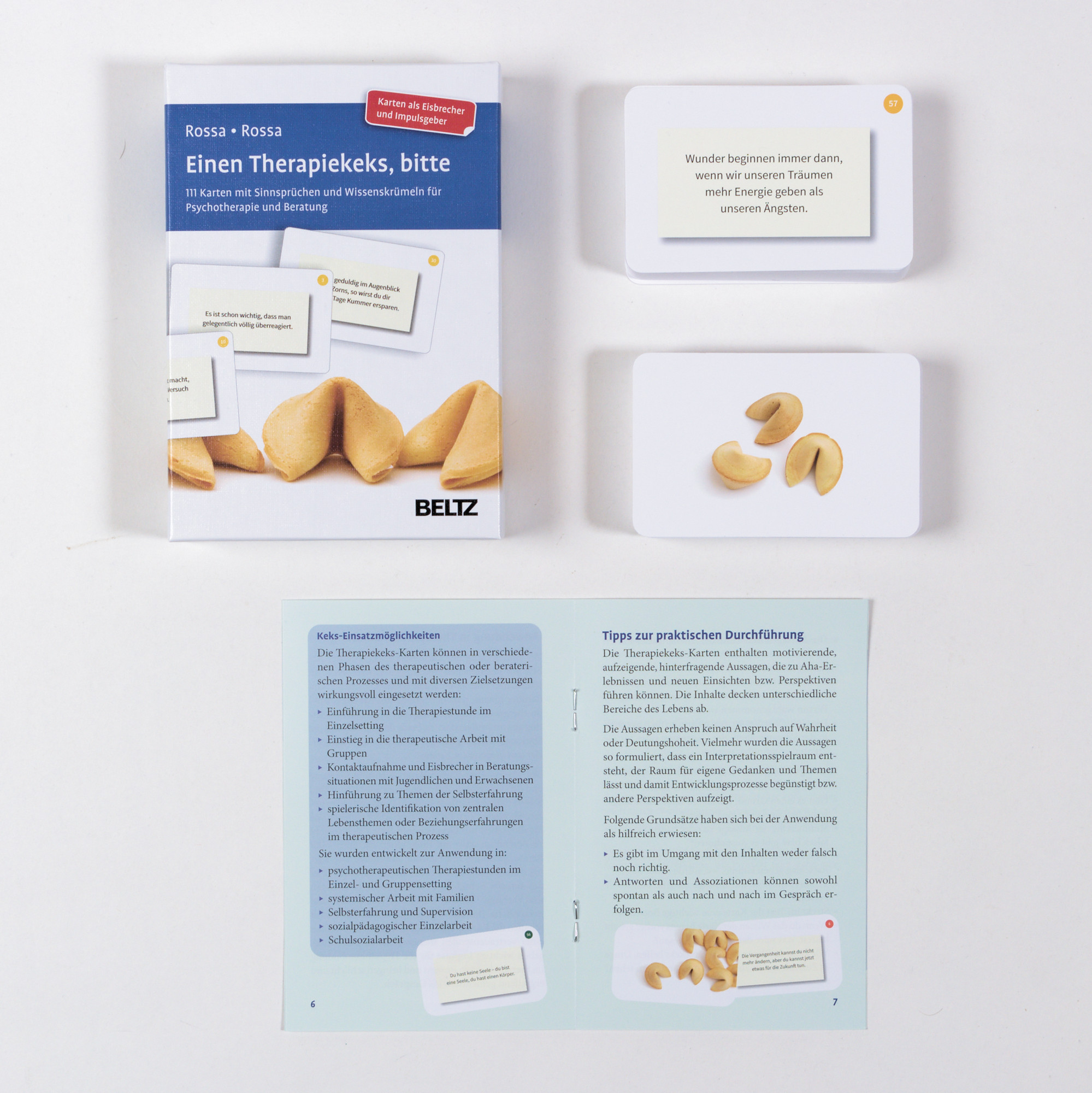 »Ein Nein zu jemand anderem, ist häufig ein Ja zu sich selbst« oder »Wer zuerst sich selbst hilft, kann auch anderen helfen« – die Metapher des Glückskekses mit den manchmal klugen, manchmal rätselhaften Sprüchen wird in diesem Kartenset therapeutisch nutzbar gemacht.