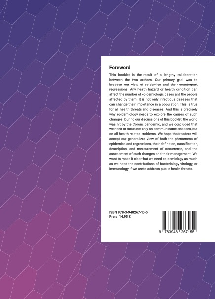 This booklet is the result of a lengthy collaboration between the two authors. Our primary goal was to broaden our view of epidemics and their counterpart, regressions. Any health hazard or health condition can affect the number of epidemiologic cases and the people affected by them. It is not only infectious diseases that can change their importance in a population. This is true for all health threats and diseases. And this is precisely why epidemiology needs to explore the causes of such changes. During our discussions of this booklet, the world was hit by the Corona pandemic, and we concluded that we need to focus not only on communicable diseases, but on all health-related problems. We hope that readers will accept our generalized view of both the phenomena of epidemics and regressions, their definition, classification, description, and measurement of occurrence, and the assessment of such changes and their management. We want to make it clear that we need epidemiology as much as we need the contributions of bacteriology, virology, or immunology if we are to address public health threats.