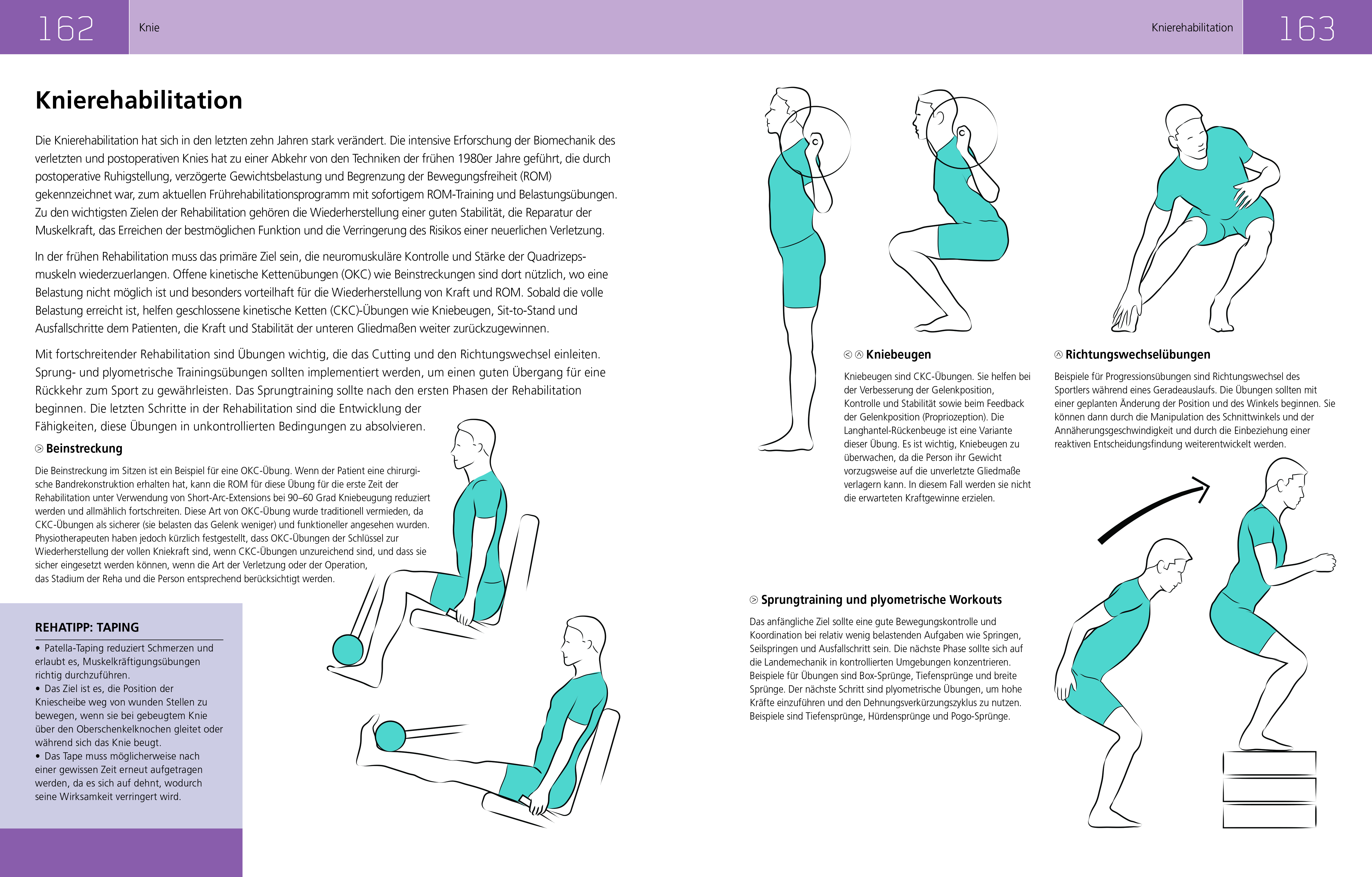 Dieses praktische Arbeitsbuch bietet einen detaillierten Einblick in 65 der häufigsten Sportverletzungen im Sport, geordnet nach Körperteilen. Zu jeder Sportverletzung gibt es leicht verständliche Beschreibungen, die erläutern, wie die Verletzung entsteht, welche Sportarten und Aktivitäten sie verursachen können und wie man sie vermeidet und behandelt. Daneben gibt es anatomische Abbildungen in Farbe, die den verletzten Körperteil und die ihn umgebenden Strukturen im Detail zeigen. Zusätzliche Infoboxen bieten einen Überblick über Risikofaktoren, wichtige Fakten und verwandte Verletzungen. Am Ende eines jeden Kapitels gibt es eine Zusammenfassung von Rehabilitationsmaßnahmen und illustrierte Schritt-für-Schritt-Übungen, die die Genesung fördern und weitere Verletzungen verhindern sollen.Dieses Buch ist ein unverzichtbares Hilfsmittel für Physiotherapeuten, Sporttherapiestudenten und Sportbegeisterte, die verstehen wollen, wie diese häufigen Verletzungen entstehen, wie man ihnen vorbeugen kann und welche Behandlungsarten zur Linderung beitragen.