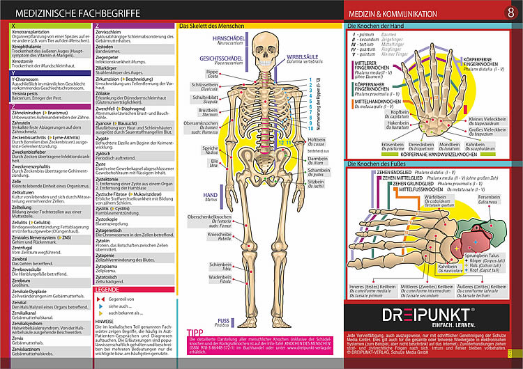 Aus dem Inhalt:- 1.200 Fachbegriffe aus dem medizinischen Bereich von A-Z- Skelettknochen (mit Abbildung)- Knochen der Hand (mit Abbildung)- Knochen des Fußes (mit Abbildung)