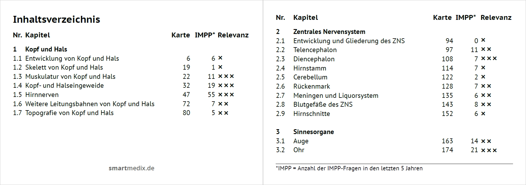 SmartMedix Lernkarten sind von Medizinern für Mediziner entwickelt und geschrieben. Auch komplizierte Themen werden mit klarer und verständlicher Sprache erklärt. Die Prüfungsrelevanz von 1 – 3 Kreuzen zeigt dir, wie wichtig eine Lernkarte ist. Dank des durchdachten Konzepts mit Merke-Kästen und Markierungen siehst du auf einen Blick, was du auf jeden Fall wissen solltest. Didaktisch wertvolle Abbildungen machen das Lernen anschaulicher und effektiver. Interaktive Schemata helfen besonders relevantes Wissen besser einzuprägen. Und Klinik-Kästen stellen das vorklinische Wissen in den Kontext von Krankheiten. Nicht zuletzt helfen dir Lerntipps mit Merksprüchen und Prüfungsfallen. Mit allen unseren Lernkarten bekommst du mehrfach geprüfte Inhalte, die unseren aufwendigen Prozess der Qualitätssicherung durchlaufen haben.