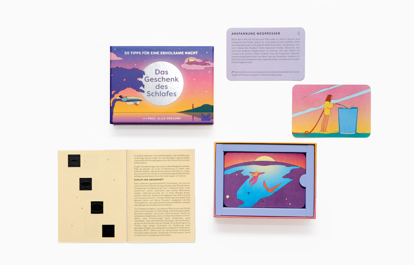 | Zusatzinfo | •Selbsthilfe bei Schlafstörungen •50 wunderschön illustrierte Karten mit praktischen Tipps für besseren Schlaf •perfekt als Geschenk und als Selbstkauf |