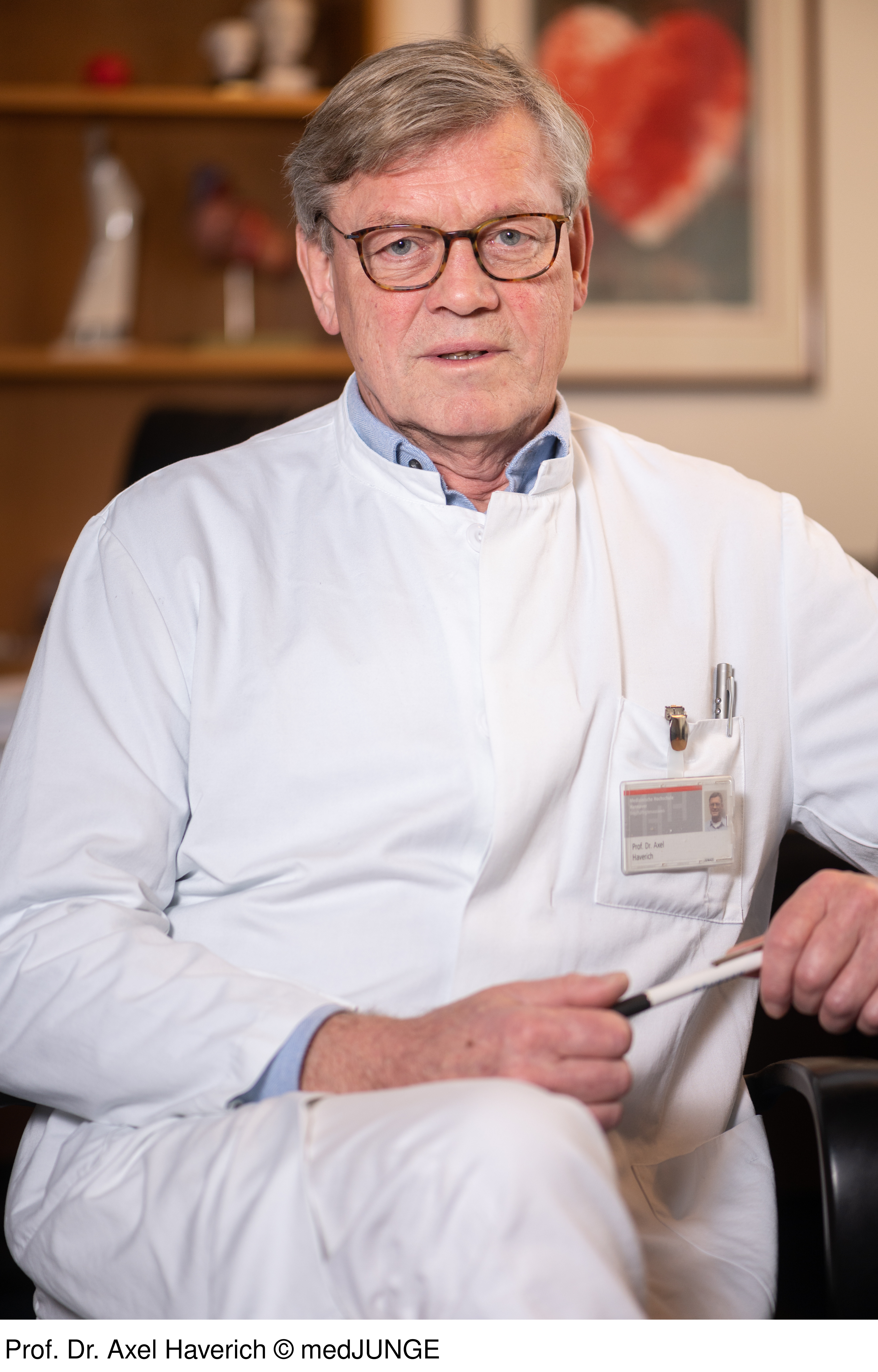Prof. Dr. Axel Haverich ist Transplantationsmediziner und Herzchirurg. Er gilt als Koryphäe auf seinem Gebiet. Seit 1985 hat er Hunderte von Herzen und Lungen verpflanzt. Er war Chefarzt der Herzchirurgie an der Uniklinik Kiel. Als langjähriger Klinikdirektor entwickelte er zudem die Medizinische Hochschule Hannover zu einem der führenden Transplantationszentren Europas. Zu seinen Patient:innen gehörten u.a. Johannes Rau, Boris Jelzin und Doris Schröder-Köpf.