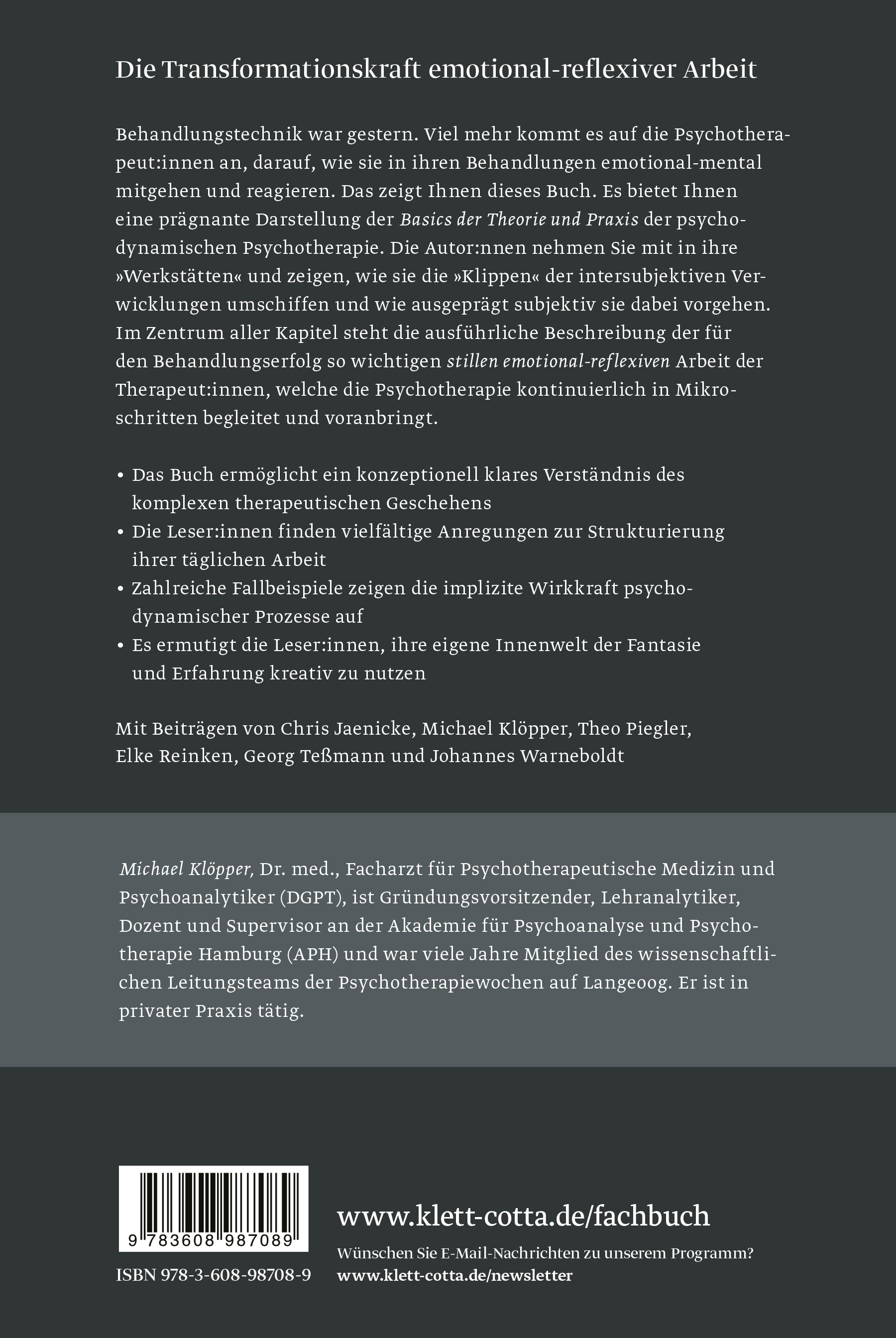 Diese Arbeit und weitere Basics der aktuellen Theorie und Praxis der psychodynamischen Psychotherapie werden im ersten Teil dargestellt. Im Anschluss werden die Leser:innen mitgenommen in die »Werkstätten« der Autor:innen und erfahren, wie diese die Klippen intersubjektiver Verwicklungen erfolgreich umschiffen, indem sie ihre persönliche Subjektivität und Kreativität als Hilfsmittel einsetzen.