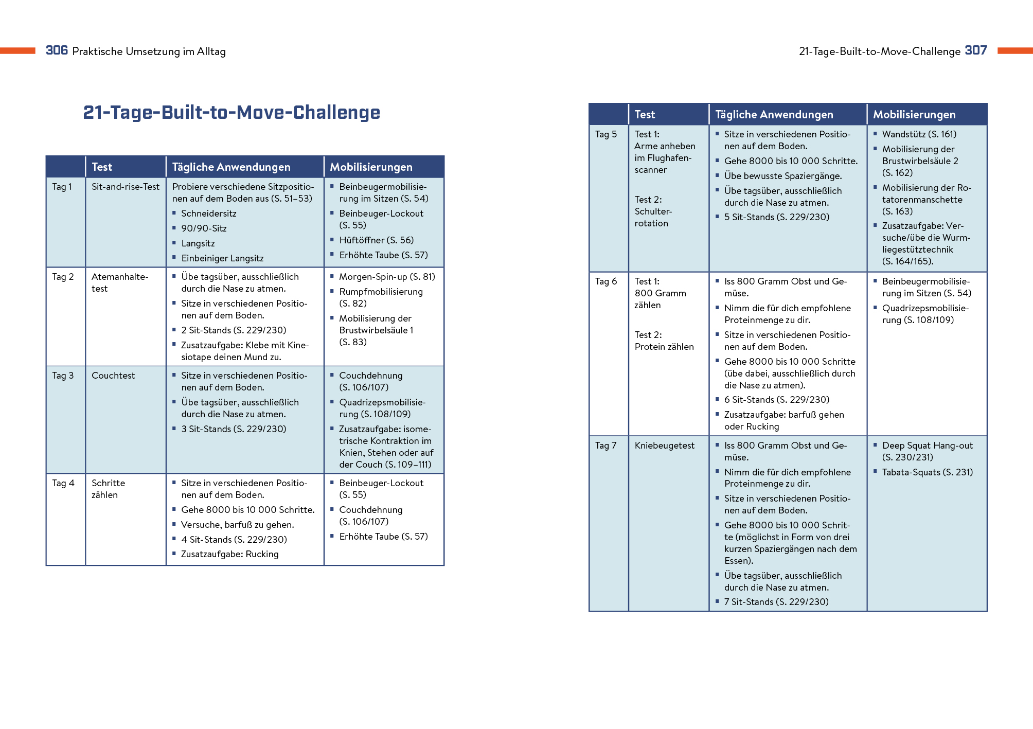 Built to Move ist das Fundament für jeden ob trainiert oder untrainiert, Leistungs- oder Breitensportler, Fitnessstudiojunkie oder -hasser, jung oder alt und für alle dazwischen. Die Übungen sind einfach umzusetzen und die 21-Tage-Built-to-Move-Challenge lässt sich spielend in den Alltag integrieren.