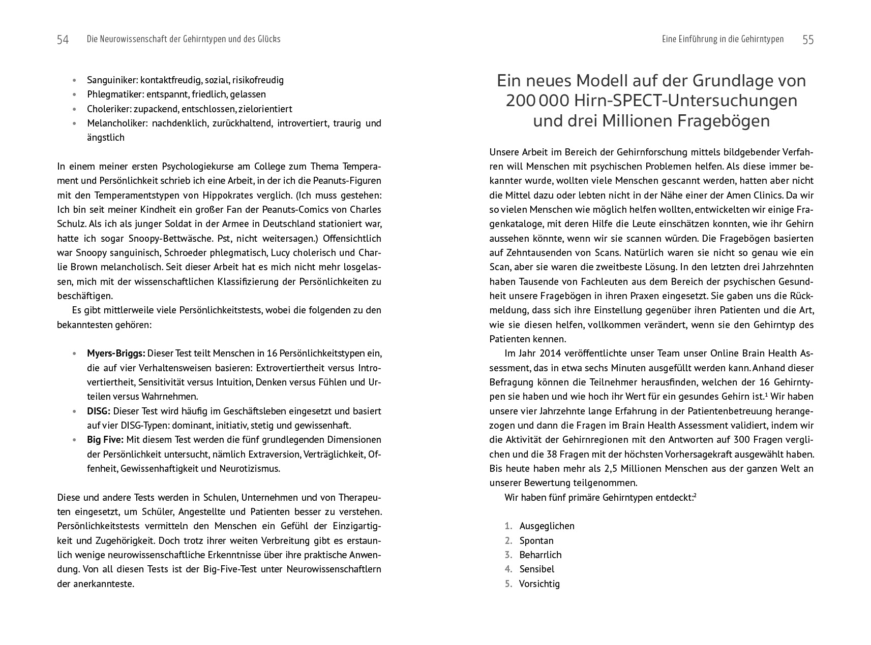 Glück ist mehr als ein Gefühlszustand es ist eine Gehirnfunktion, ein physiologischer Prozess, der sowohl Nährstoffe benötigt als auch produziert. Letztere sind enorm wichtig für weitere Abläufe im menschlichen Organismus. Man kann also sagen: Man braucht ein gesundes Gehirn, um sich glücklich zu fühlen, und ein glückliches Gehirn, um körperlich gesund zu sein. Um diesen Kreislauf anzukurbeln und aktiv zu halten, hat Neurowissenschaftler Dr. Daniel Amen sieben Strategien entwickelt, mit denen jeder den eigenen Glücks- und Gesundheitszustand verbessern kann. Hat man erst einmal seinen Gehirntyp identifiziert, lässt sich ganz gezielt die eigene »Glücksstrategie« zusammenstellen. Die Versorgung mit bestimmten Nährstoffen ist dabei von zentraler Bedeutung, denn diese liefern die Grundlage für neuronale Prozesse. Aber auch die Qualität der eigenen Gedanken und Stressmanagement spielen eine wichtige Rolle. Handfeste, konkrete Tipps sowie Lebensmittel- und Nährstoffübersichten helfen dabei, den richtigen Weg zu finden, um sich nicht nur glücklicher zu fühlen, sondern auch Krankheiten vorzubeugen und den Körper gesund zu halten.