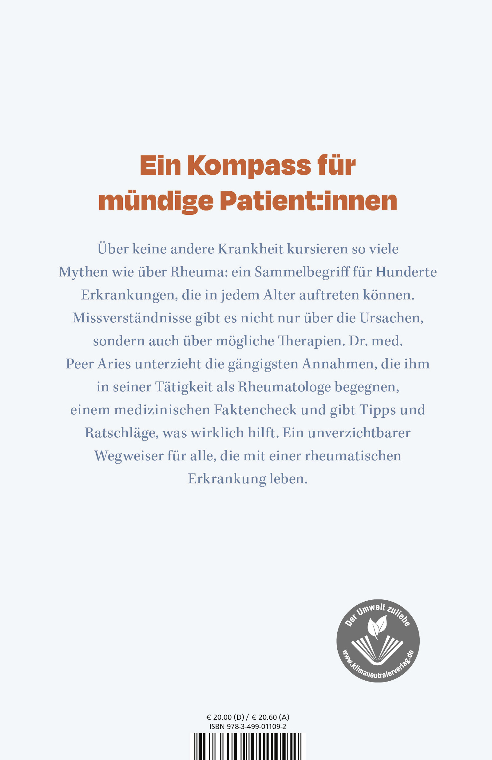 Dr. Peer Aries ist wissenschaftlich tätig, arbeitet als praktizierender Rheumatologe und ist für seine lebhaften Vorträge bekannt. Hier räumt er mit falschen Annahmen, Missverständnissen und (gefährlichem) Halbwissen auf: In eingängigen Kapiteln knöpft sich Dr. Peer Aries jeweils einen Mythos vor, unterzieht ihn einem medizinischen Faktencheck und gibt Tipps und Ratschläge, was wirklich hilft.