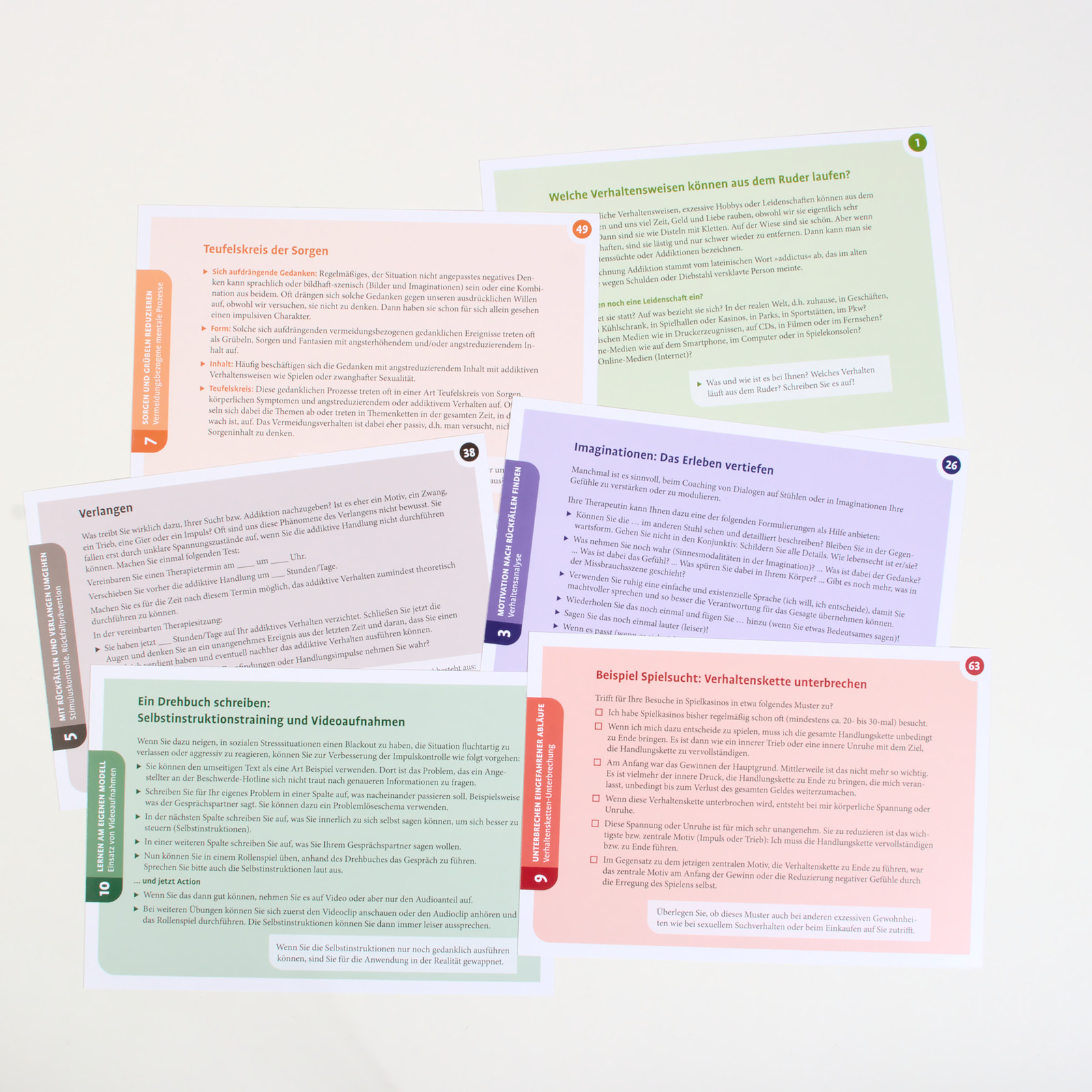 Verhaltenssüchte und Impulskontrollstörungen können verheerende Auswirkungen auf die Betroffenen und ihre Familien haben. Die psychotherapeutischen Ansatzpunkte überschneiden sich stark. Das Kartenset bietet Übungen, Gedankenexperimente und Psychoedukation, um Hochrisikosituationen zu erkennen, eingefahrene Abläufe zu unterbrechen und den Umgang mit dem Rückfall zu trainieren.