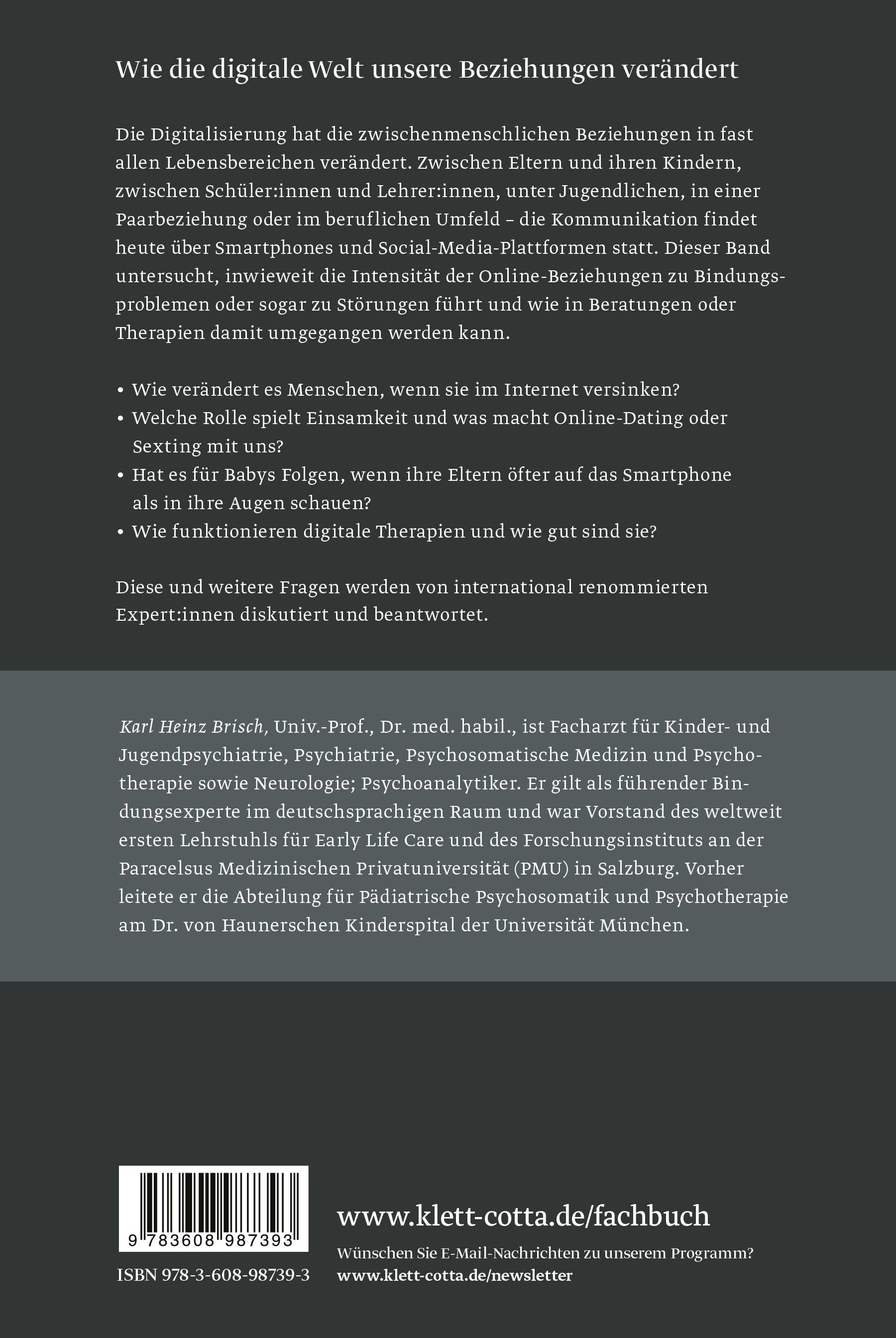 Die Digitalisierung hat die zwischenmenschlichen Beziehungen in fast allen Lebensbereichen verändert. Dieser Band untersucht, inwieweit die Intensität der Online-Beziehungen zu Bindungsproblemen oder sogar zu Störungen führt und wie in Beratungen oder Therapien damit umgegangen werden kann.
