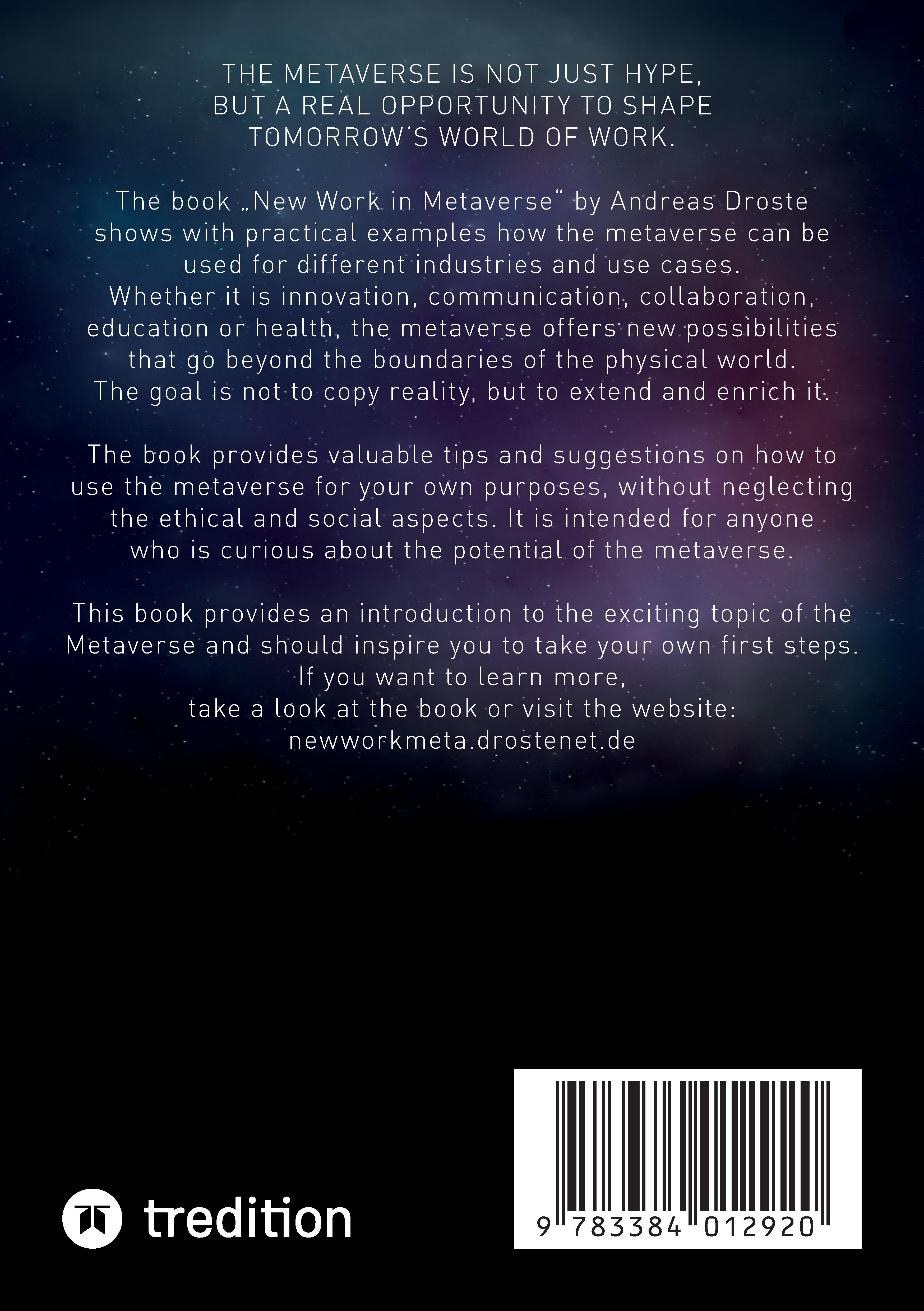 The metaverse (no matter in which definition and sometimes even without...) is one of the most hyped topics at the moment. It can be found in all kinds of media and channels and almost everybody feels called to give his personal statement about it. However, only a few of the discussants, futurologists or authors have actually been able to gather practical experience. From a certain level of abstraction, the metaverse is so wonderfully undefined that almost anyone can express their opinion on it without it being questioned on the basis of facts.But this is precisely where the problem lies. The metaverse is already far more concrete than it appears in the public perception. And it needs practical application scenarios in a wide variety of areas to actually become a successful concept. Together with my colleagues and external partners, I was very fortunate that we were able to work out precisely these scenarios in very concrete terms, implement them in the metaverse and test them in our daily work. This was favored by the pandemic, and the associated reduction in personal contacts.The practical work in the different formats and industries have always made me want more and encouraged creativity. What became clear very quickly is that the metaverse can superficially be a reflection of reality, but it doesn't have to be. It follows its own laws and rules. These must be taken into account if it is to become an integral part of our daily work. This starts with the interfaces between the real and the virtual world, continues with working techniques and tools used in the metaverse and ends with the peculiarities of social interaction, such as the question of the existence of empathy in virtual worlds.I don't pretend to have found a final answer to all these topics, but in three years of daily practice with a lot of positive but also painful lessons-learned, it's time to share the accumulated knowledge and experience. I am not specifically addressing IT specialists or other subject matter experts in the field of Virtual Reality. Quite the contrary. This book is aimed at all those who have an inkling of the potential of the Metaverse, but don't really know yet how to apply it to their daily work or business.The metaverse is one of the most hyped topics at the moment. It is therefore necessary to recognize today where opportunities can arise in business. This is exactly what this book is about