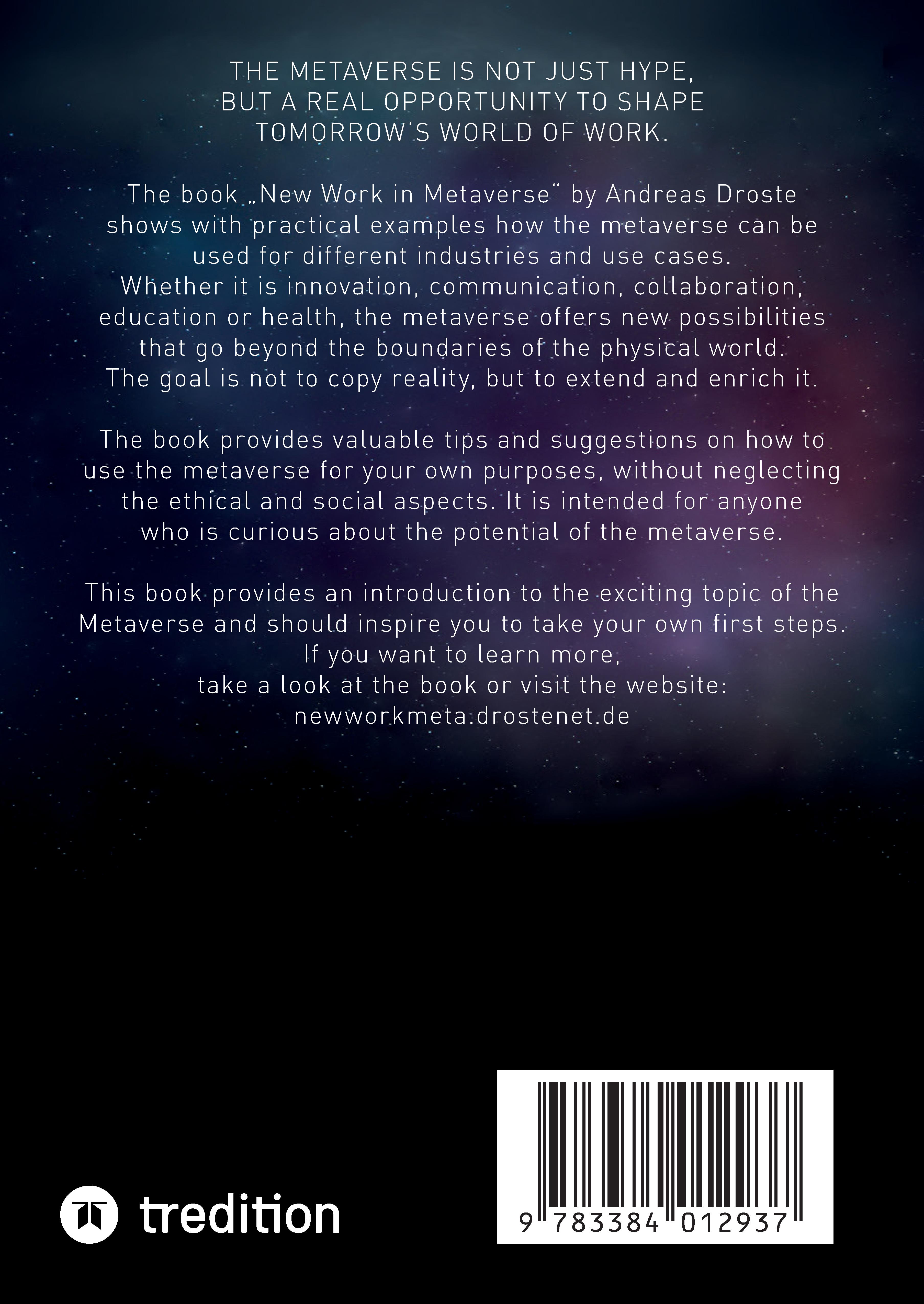 The metaverse (no matter in which definition and sometimes even without...) is one of the most hyped topics at the moment. It can be found in all kinds of media and channels and almost everybody feels called to give his personal statement about it. However, only a few of the discussants, futurologists or authors have actually been able to gather practical experience. From a certain level of abstraction, the metaverse is so wonderfully undefined that almost anyone can express their opinion on it without it being questioned on the basis of facts.But this is precisely where the problem lies. The metaverse is already far more concrete than it appears in the public perception. And it needs practical application scenarios in a wide variety of areas to actually become a successful concept. Together with my colleagues and external partners, I was very fortunate that we were able to work out precisely these scenarios in very concrete terms, implement them in the metaverse and test them in our daily work. This was favored by the pandemic, and the associated reduction in personal contacts.The practical work in the different formats and industries have always made me want more and encouraged creativity. What became clear very quickly is that the metaverse can superficially be a reflection of reality, but it doesn't have to be. It follows its own laws and rules. These must be taken into account if it is to become an integral part of our daily work. This starts with the interfaces between the real and the virtual world, continues with working techniques and tools used in the metaverse and ends with the peculiarities of social interaction, such as the question of the existence of empathy in virtual worlds.I don't pretend to have found a final answer to all these topics, but in three years of daily practice with a lot of positive but also painful lessons-learned, it's time to share the accumulated knowledge and experience. I am not specifically addressing IT specialists or other subject matter experts in the field of Virtual Reality. Quite the contrary. This book is aimed at all those who have an inkling of the potential of the Metaverse, but don't really know yet how to apply it to their daily work or business.The metaverse is one of the most hyped topics at the moment. It is therefore necessary to recognize today where opportunities can arise in business. This is exactly what this book is about