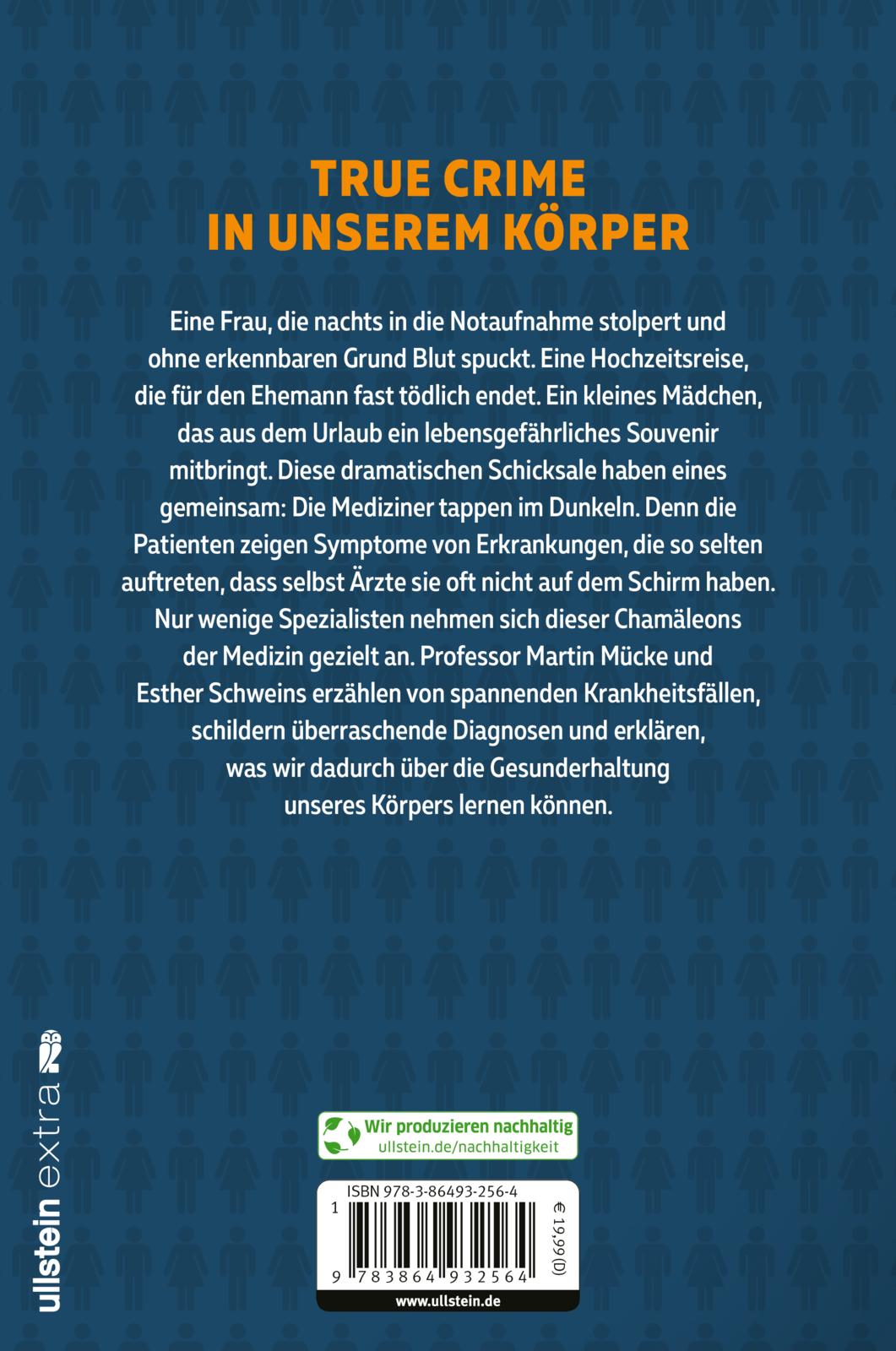 Eine Frau, die nachts in die Notaufnahme stolpert und ohne erkennbaren Grund Blut spuckt. Eine Hochzeitsreise, die für den Ehemann fast tödlich endet. Ein kleines Mädchen, das aus dem Urlaub ein lebensgefährliches Souvenir mitbringt. Diese dramatischen Schicksale haben eines gemeinsam: Die Mediziner tappen im Dunkeln. Denn die Patienten zeigen Symptome von Erkrankungen, die so selten auftreten, dass selbst Ärzte sie oft nicht auf dem Schirm haben. Nur wenige Spezialisten nehmen sich dieser Chamäleons der Medizin gezielt an. Professor Martin Mücke und Esther Schweins erzählen von spannenden Krankheitsfällen, schildern überraschende Diagnosen und erklären, was wir dadurch über die Gesunderhaltung unseres Körpers lernen können.