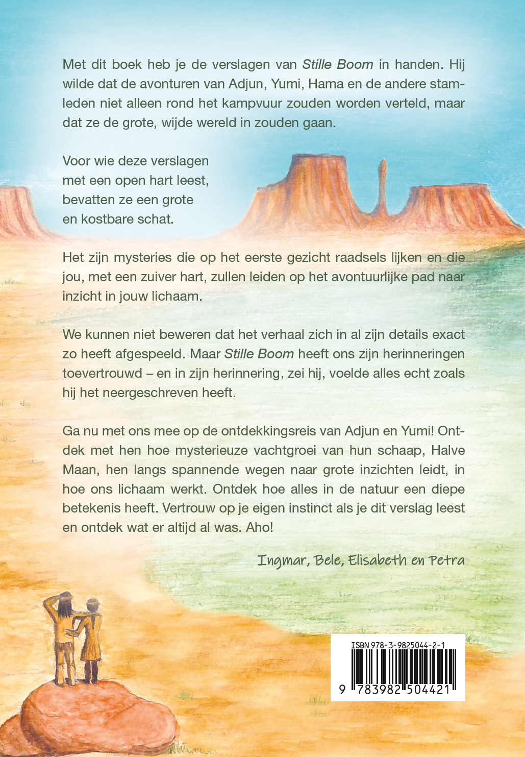 Blurb: Met dit boek heb je de verslagen van Stille Boom in handen. Hij wilde dat de avonturen van Adjun, Yumi, Hama en de andere stamleden niet alleen rond het kampvuur zouden worden verteld, maar dat ze de grote, wijde wereld in zouden gaan.