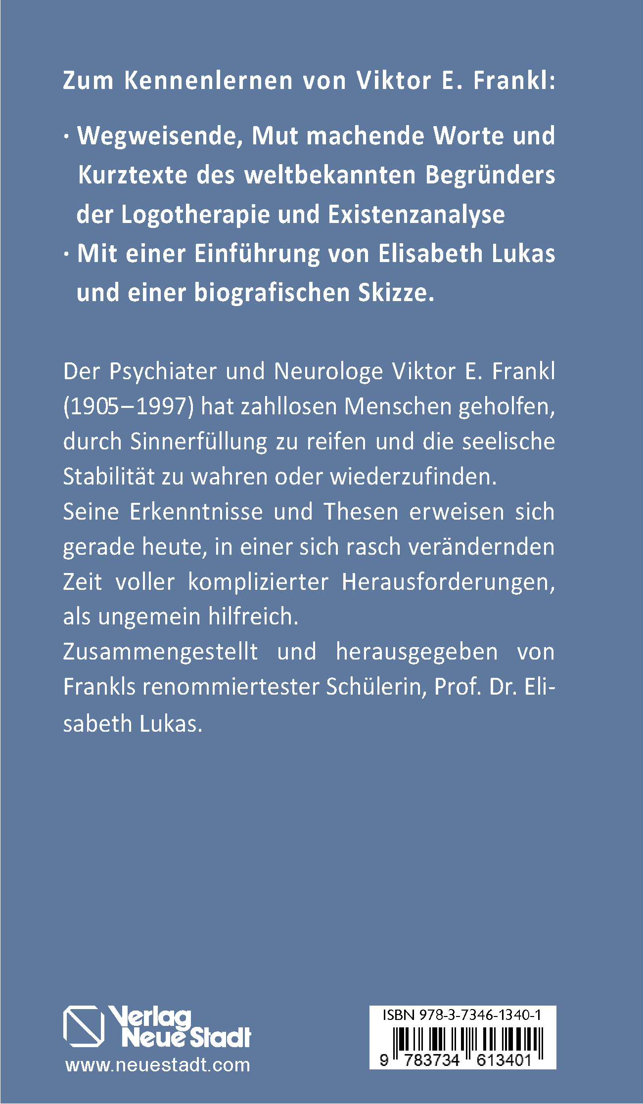 | Schlagworte | Elisabeth Lukas • Existenzanalyse • Frankl Biografische Daten Aretz • Logotherapie • Mensch sein heißt Sinn finden • Psychotherapeutischer Ansatz • Psychotherapie • Viktor E. Frankl |