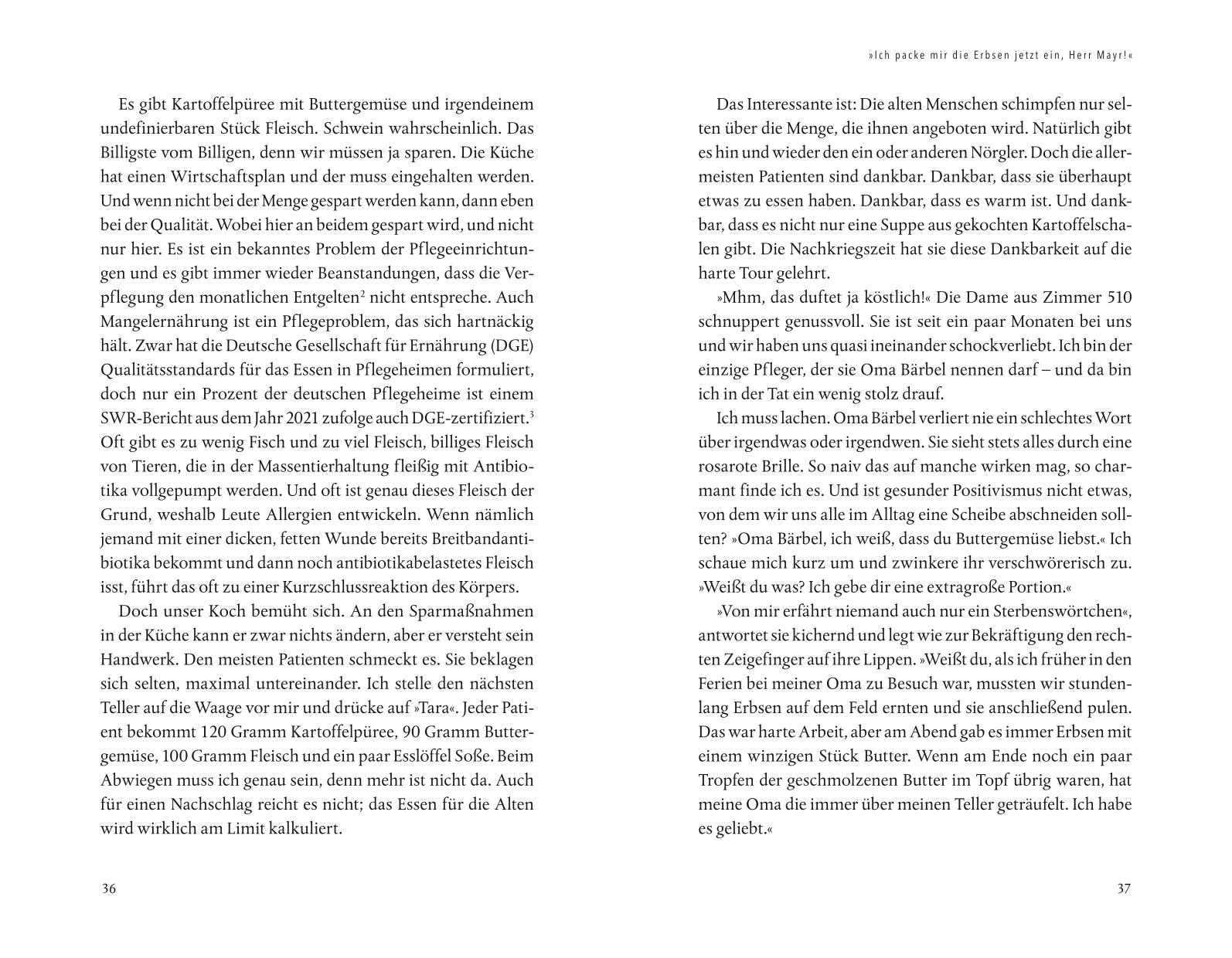 In dem Buch spricht Marcel ehrlich und offen über die Herausforderungen in der Pflege, zeigt aber auch, welche schönen und unbezahlbaren Momente er als Altenpfleger erfahren durfte. Dabei lässt er uns teilhaben an den Lebensweisheiten und Ratschlägen, die ihm mit auf den Weg gegeben wurden.