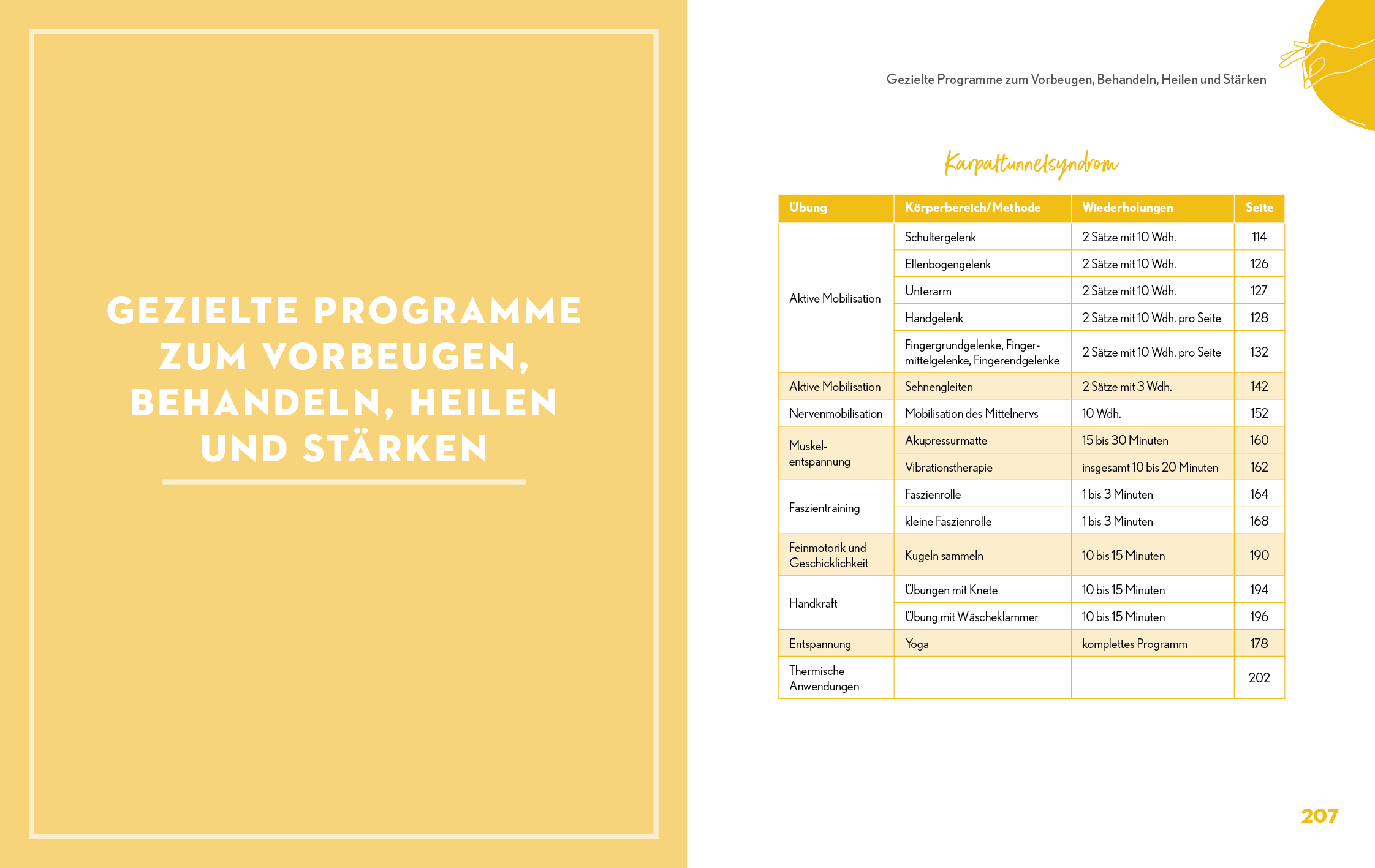 Fällt es Ihnen schwer, den Reißverschluss Ihrer Jacke zu schließen? Haben Sie oft ein Kälte- oder Taubheitsgefühl in den Fingern? Oder sticht und brennt es bei jedem Griff?Wie wichtig die Hände für das alltägliche Leben sind, macht sich oft erst dann bemerkbar, wenn sie nicht mehr vollständig funktionieren. Einseitige oder übermäßige Belastung, Verletzungen oder Erkrankungen können zu starken Schmerzen führen, die enorm einschränken und Lebensqualität kosten.Für Ihren Weg zurück zu starken und gesunden Händen hat die Handtherapeutin Melanie Wittich die besten Übungen zusammengestellt, mit denen Sie Beweglichkeit, Griffkraft und Motorik trainieren sowie Gelenke, Muskeln, Sehnen und Kapseln geschmeidig halten können. Maßgeschneiderte Programme helfen Ihnen dabei, Beschwerden gezielt und effektiv entgegenzuwirken, wie zum Beispiel:- Karpaltunnelsyndrom- Schnappfinger- Mausarm- rheumatische Erkrankungen- Gicht- Kapsel-Band-VerletzungenPacken Sie es an und nehmen Sie Ihre Gesundheit in die Hand!