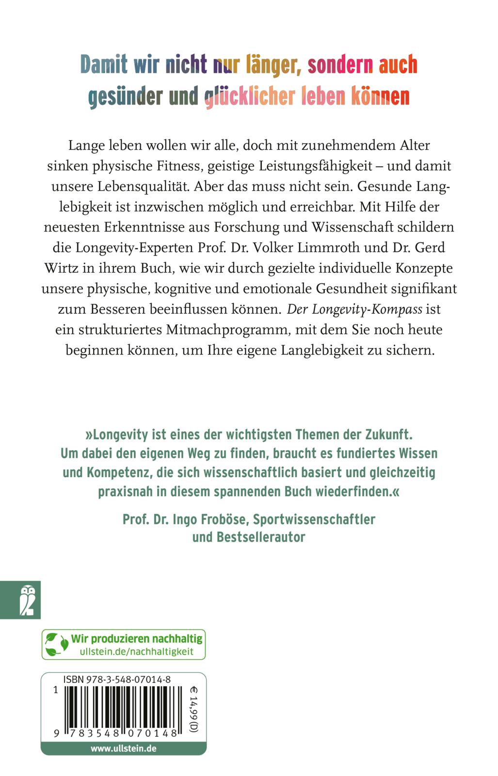 Die Longevity-Experten Prof. Dr. Limmroth und Dr. Wirtz schildern in »Der Longevity-Kompass«, wie wir unsere physische, kognitive und emotionale Gesundheit positiv unterstützen und fit halten - um jede weitere Dekade in unserem Leben zu optimieren.