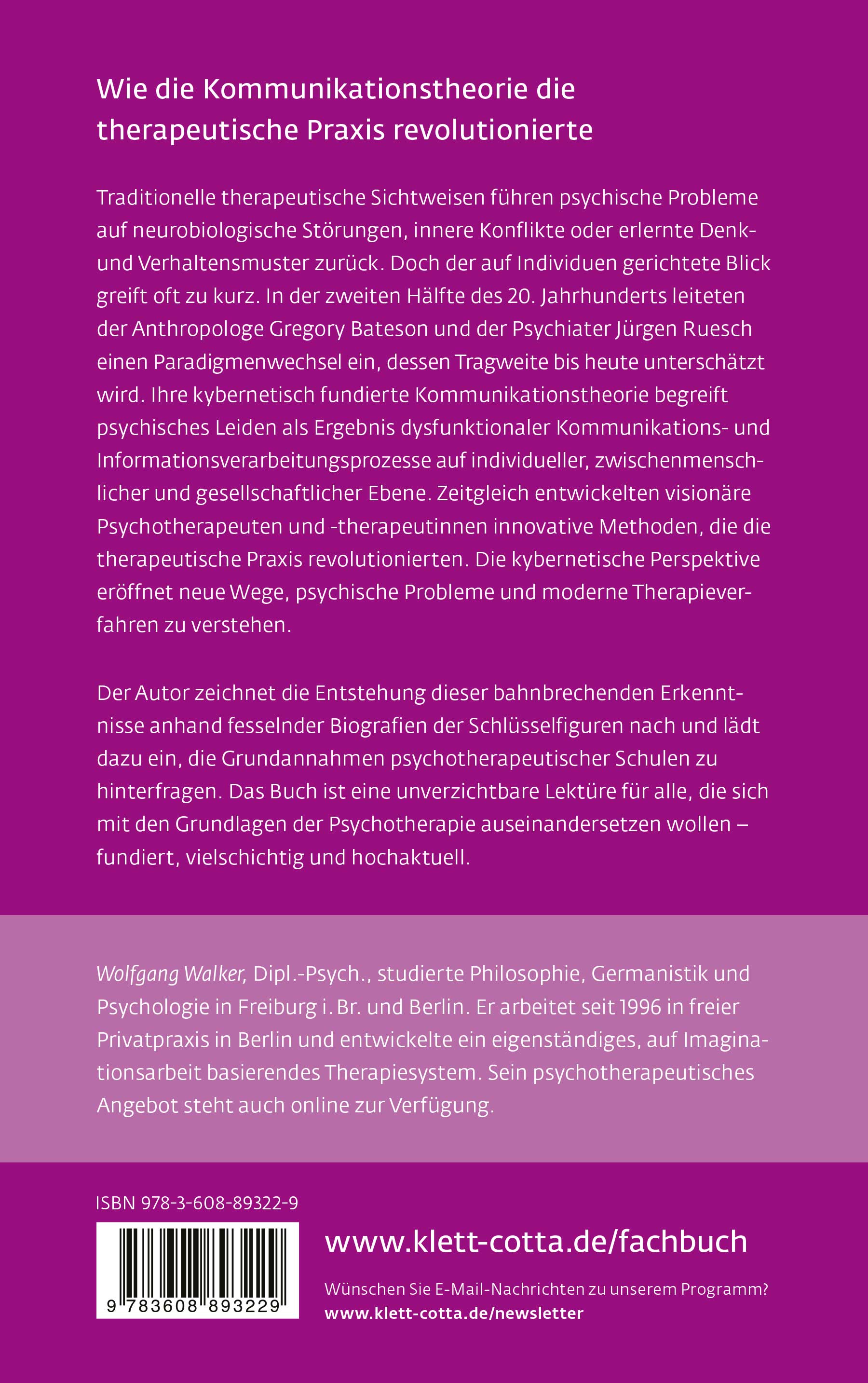 Wolfgang Walker arbeitet in freier Praxis als Therapeut, Ausbilder und Autor in Berlin. Er ist Leiter des Forschungs- und Ausbildungsinstituts „NLP Berlin-Brandenburg“, dessen therapeutisch orientiertes Ausbildungsangebot sich an Therapeuten, Pädagogen, Heilpraktiker, Coaches sowie Professionelle und Studierende im therapeutischen, psychosozialen, pädagogischen und medizinischen Bereich richtet (www.nlp-berlin-brandenburg.de).