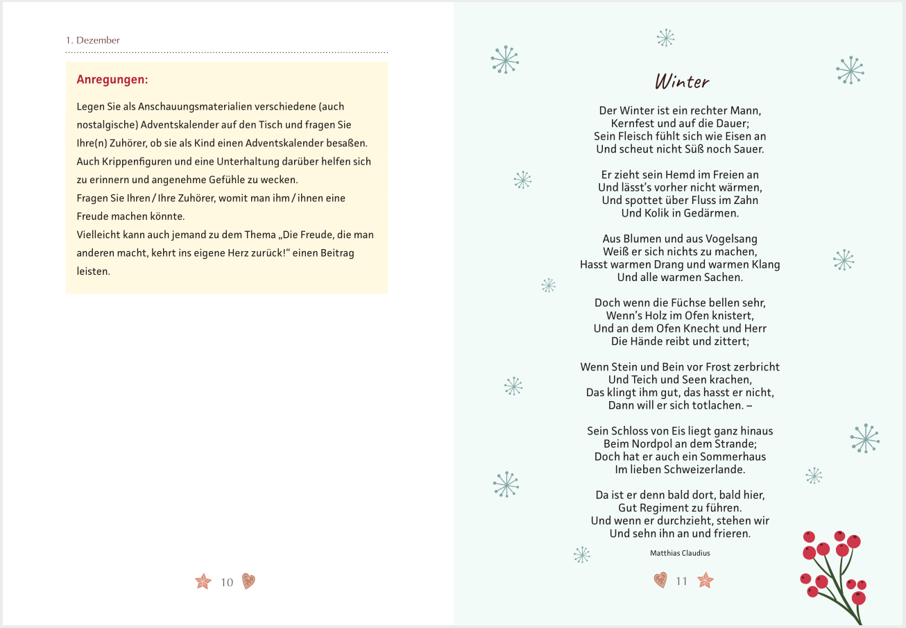 Das Adventskalenderbuch zum Vorlesen für Menschen mit Demenz