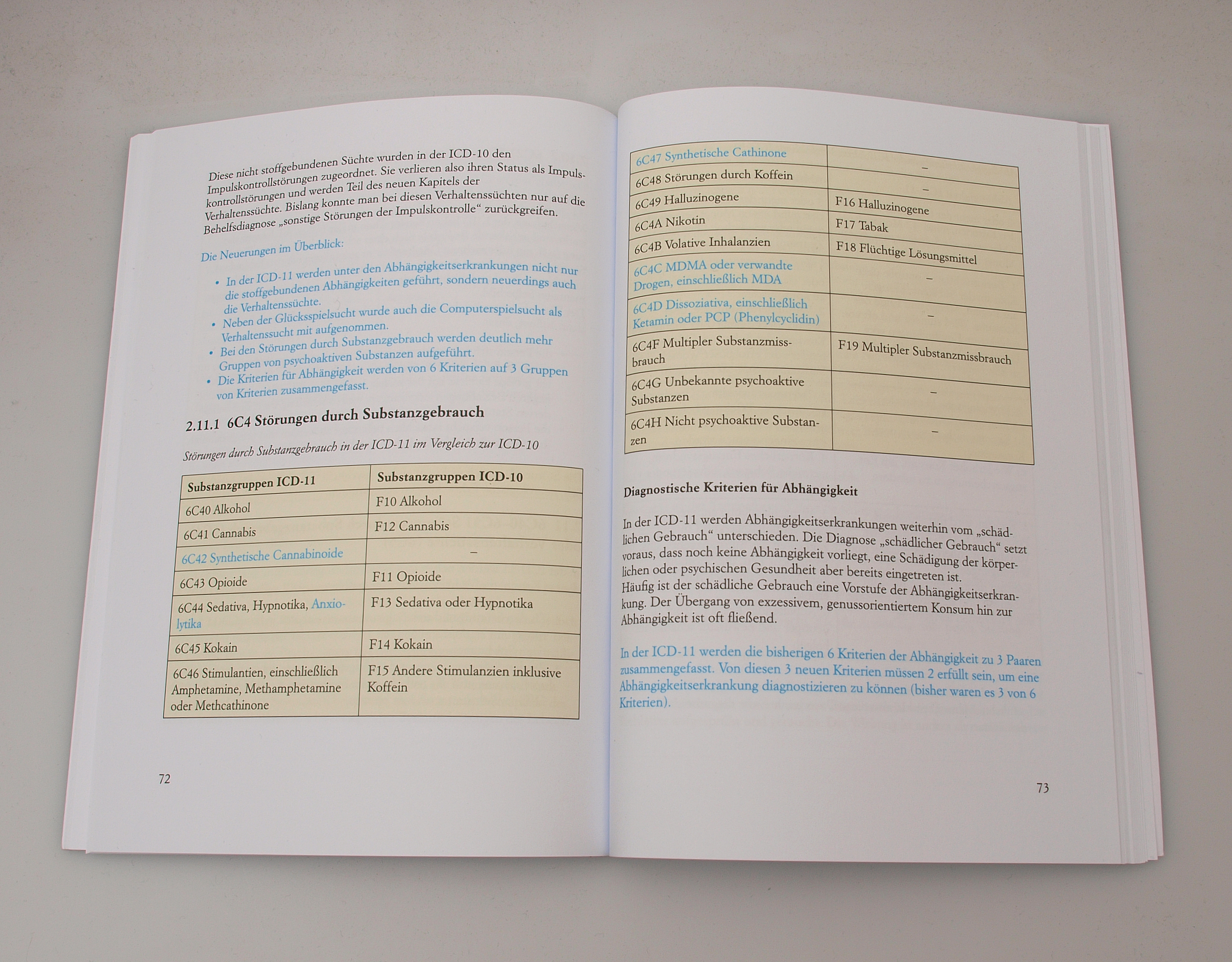 Um die Unterschiede im Kapitel für die psychischen Störungen zwischen ICD-10 und ICD-11 leicht und übersichtlich zu gestalten, wurden die Neuerungen in der ICD-11 mit blauer Farbe hervorgehoben.