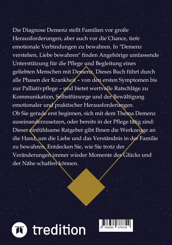 Die Diagnose Demenz stellt Familien vor große Herausforderungen, aber auch vor die Chance, tiefe emotionale Verbindungen zu bewahren. In "Demenz verstehen, Liebe bewahren" finden Angehörige umfassende Unterstützung für die Pflege und Begleitung eines geliebten Menschen mit Demenz. Dieses Buch führt durch alle Phasen der Krankheit - von den ersten Symptomen bis zur Palliativpflege - und bietet wertvolle Ratschläge zu Kommunikation, Selbstfürsorge und der Bewältigung emotionaler und praktischer Herausforderungen.Ob Sie gerade erst beginnen, sich mit dem Thema Demenz auseinanderzusetzen, oder bereits in der Pflege tätig sind: Dieser einfühlsame Ratgeber gibt Ihnen die Werkzeuge an die Hand, um die Liebe und das Verständnis in der Familie zu bewahren. Entdecken Sie, wie Sie trotz der Veränderungen immer wieder Momente des Glücks und der Nähe schaffen können.