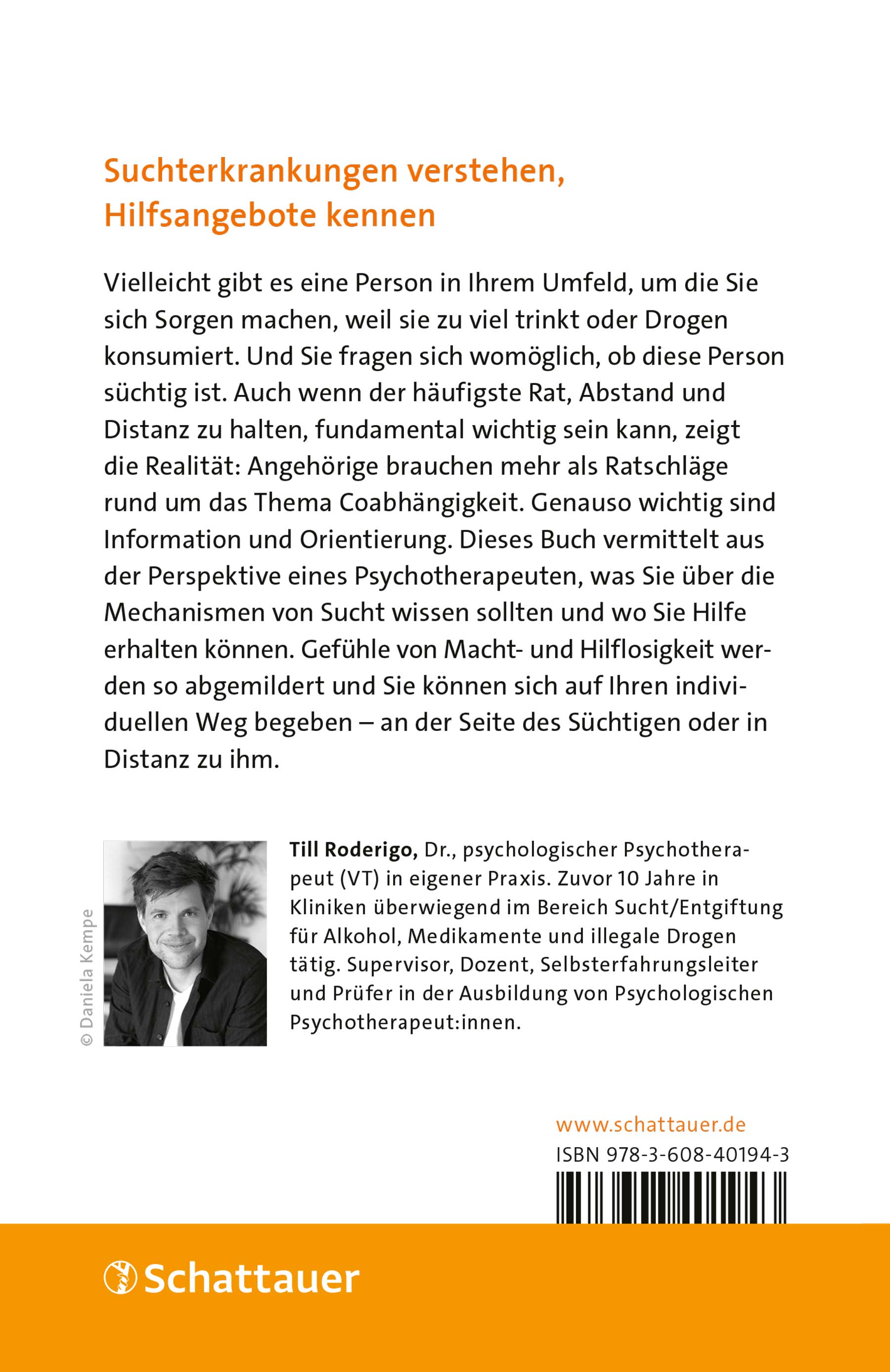 Auch wenn der häufigste Rat, Abstand und Distanz zu halten, fundamental wichtig sein kann, zeigt die Realität: Angehörige brauchen mehr als Ratschläge rund um das Thema Coabhängigkeit. Genauso wichtig sind Information und Orientierung. Dieses Buch vermittelt aus der Perspektive eines Psychotherapeuten, was Sie über die Mechanismen von Sucht wissen sollten und wo Sie Hilfe erhalten können. Gefühle von Macht- und Hilflosigkeit werden so abgemildert und Sie können sich auf Ihren individuellen Weg begeben - an der Seite des Süchtigen oder in Distanz zu ihm.