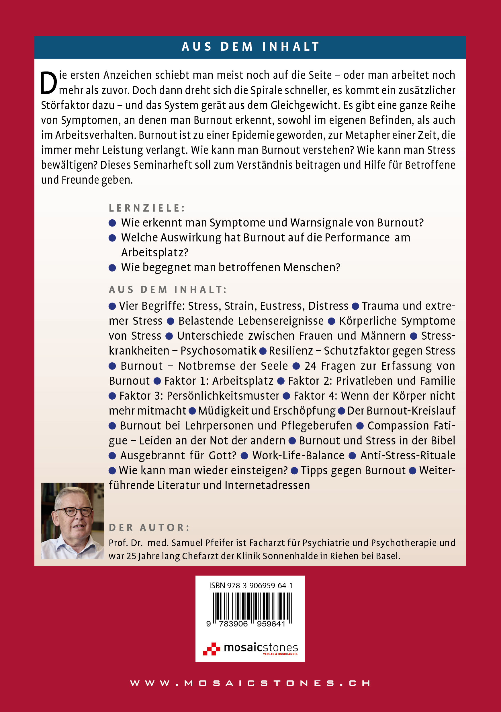 | Schlagworte | Burnout • Medizin • Psychiatrie • Psychotherapie • Seelsorge • Stress |