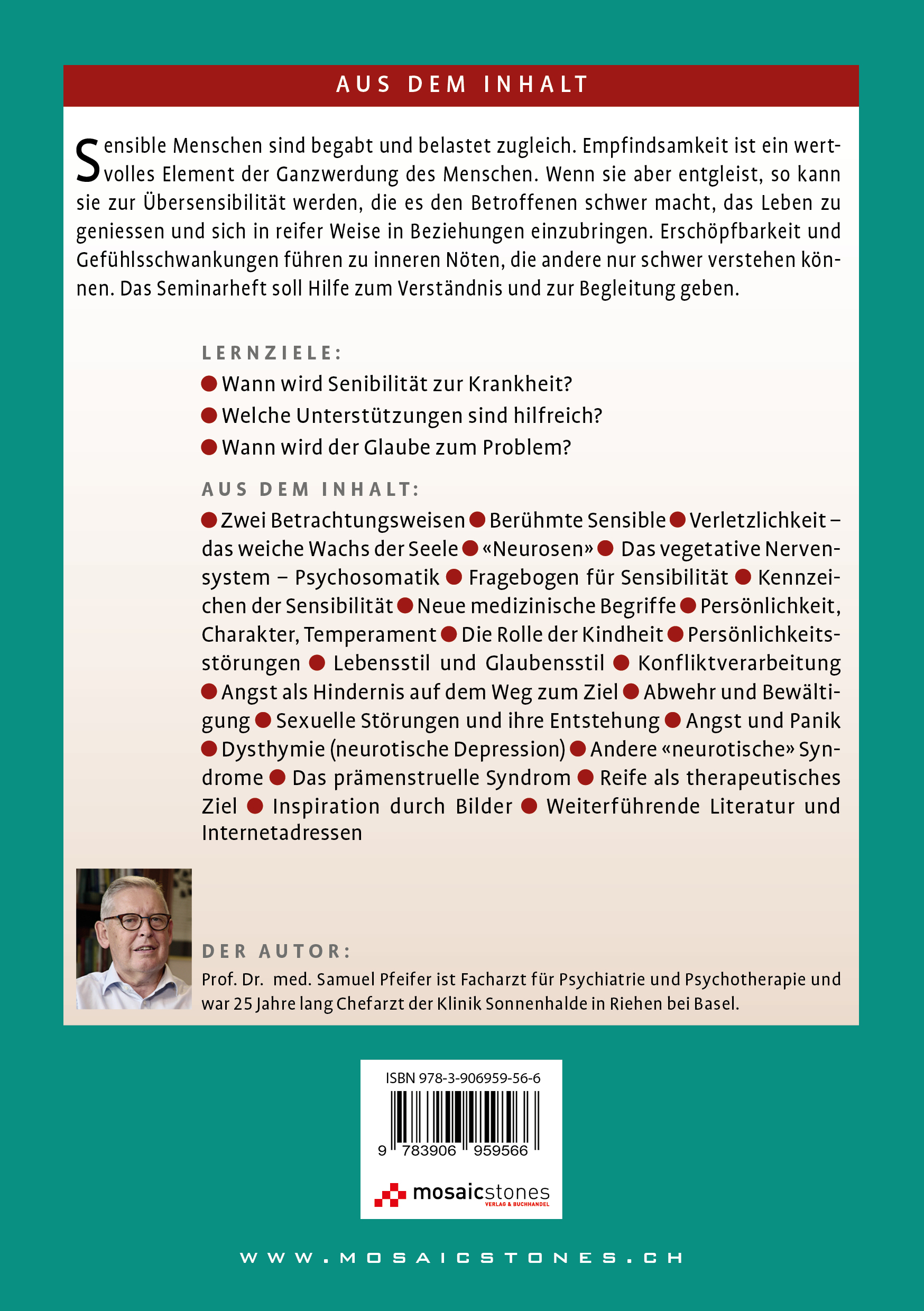 Prof. Dr. Samuel Pfeifer ist Facharzt und Professor für Psychiatrie und Psychotherapie und war 25 Jahre Chefarzt der Psychiatrischen Klinik Sonnenhalde in Riehen bei Basel. Seine Bücher und Seminarhefte sind bekannt für den Brückenschlag zwischen Psychiatrie, Psychotherapie und Seelsorge und wurden in zwölf Sprachen übersetzt.