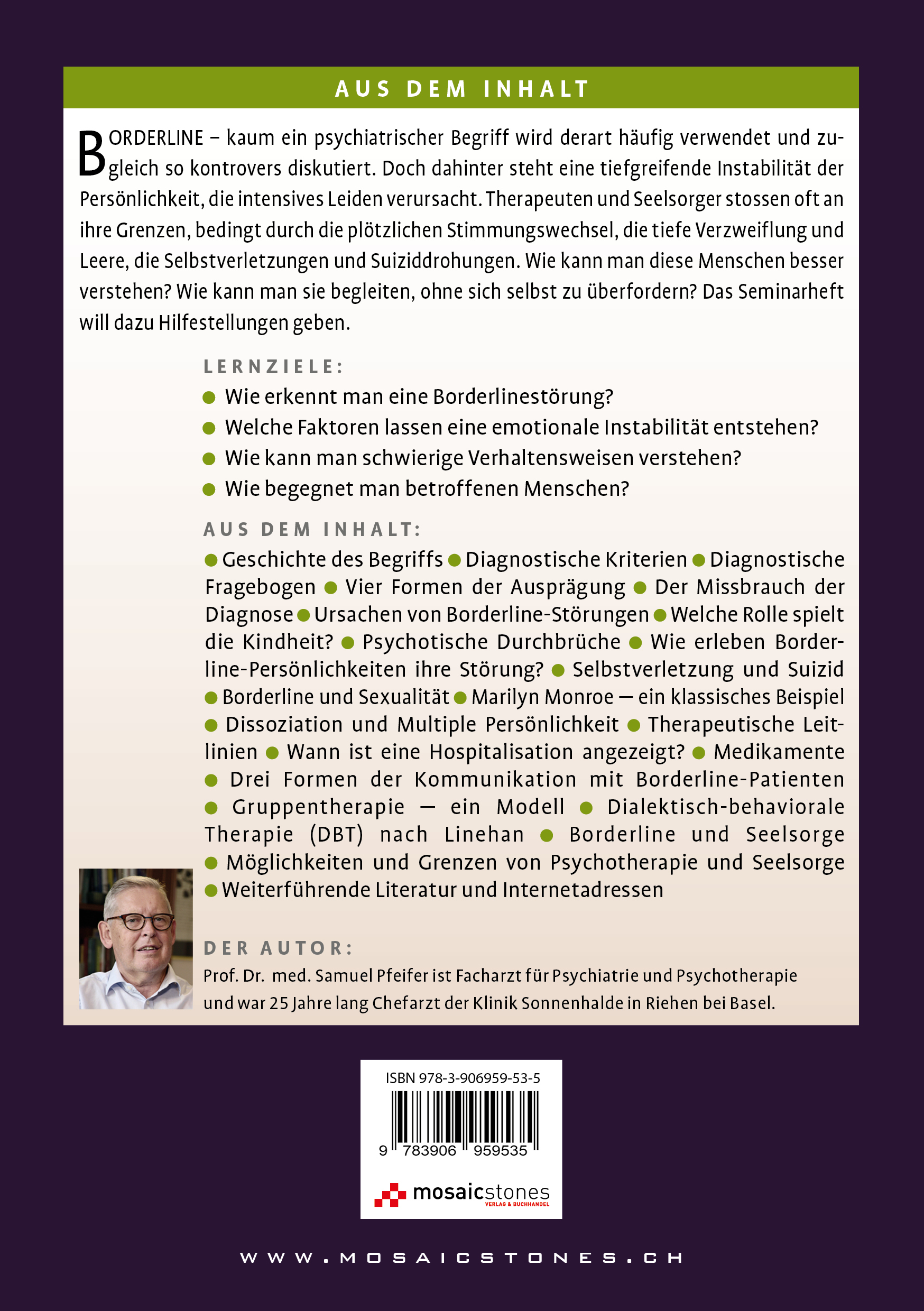 | Schlagworte | Borderline • Medizin • Psychiatrie • Psychotherapie • Seelsorge |