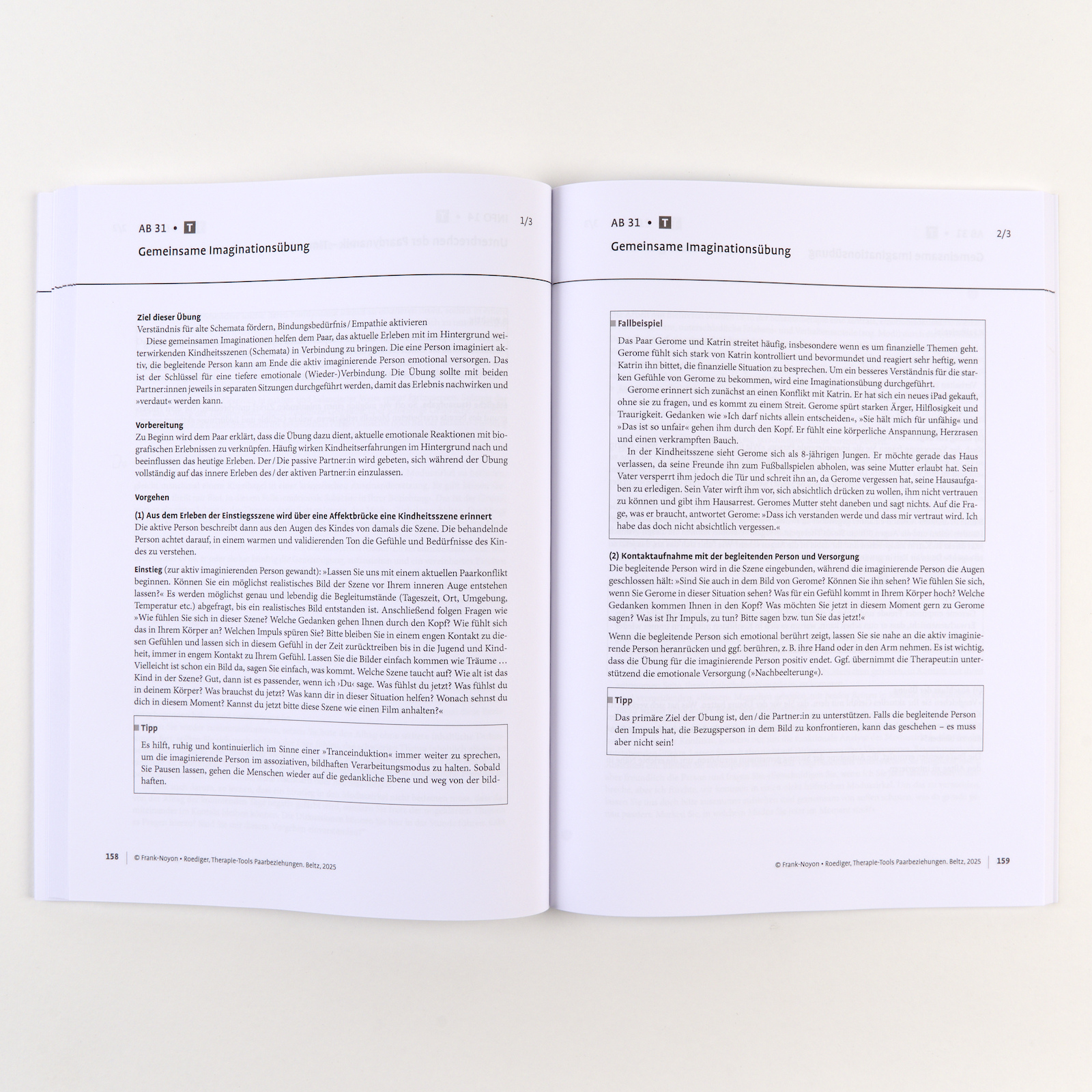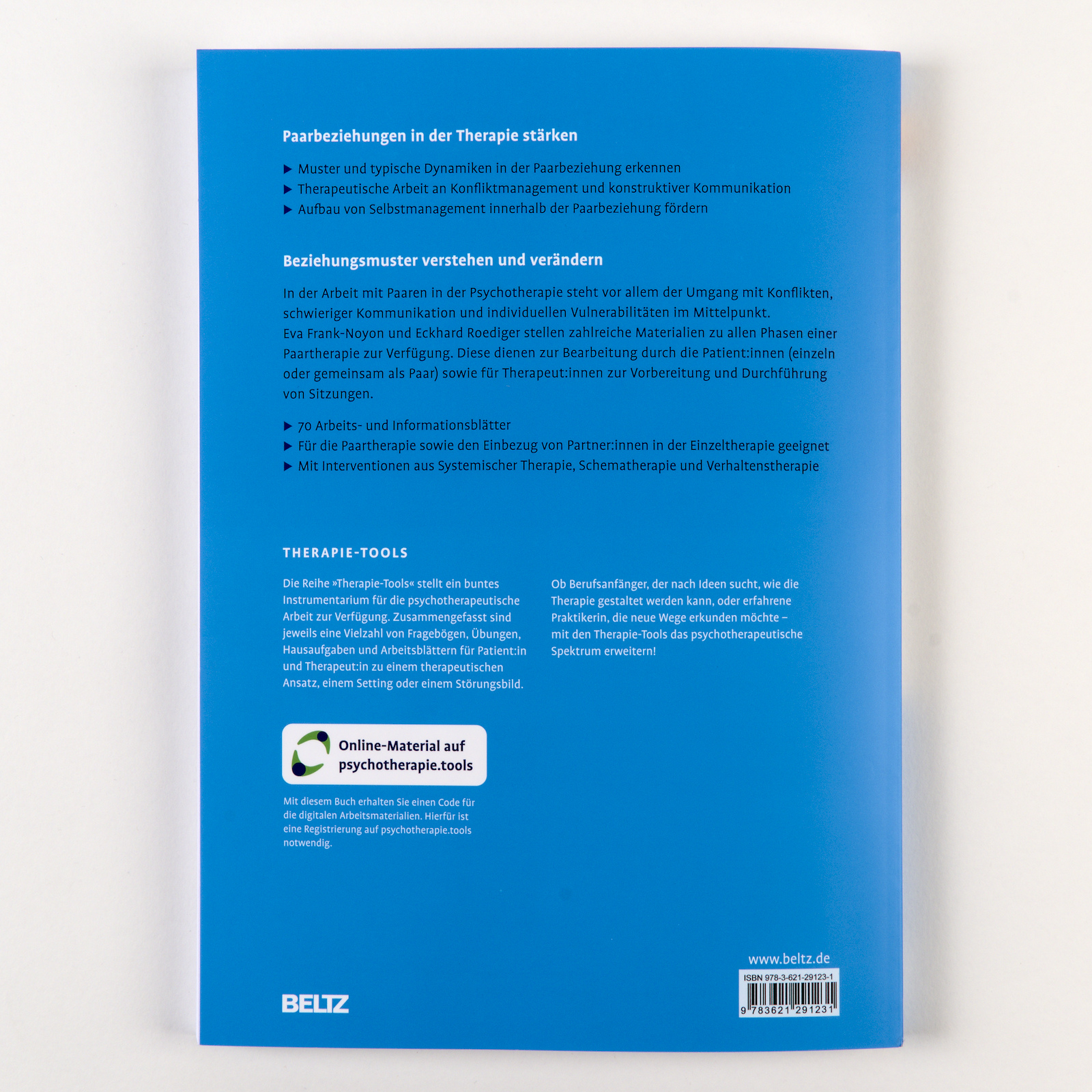 Eva Frank-Noyon und Eckhard Roediger stellen zahlreiche Materialien zu allen Phasen einer Paartherapie zur Verfügung. Die Materialien dienen zur einzelnen und gemeinsamen Bearbeitung durch die Klient:innen sowie für Therapeut:innen zur Vorbereitung und Durchführung von einzelnen Sitzungen.