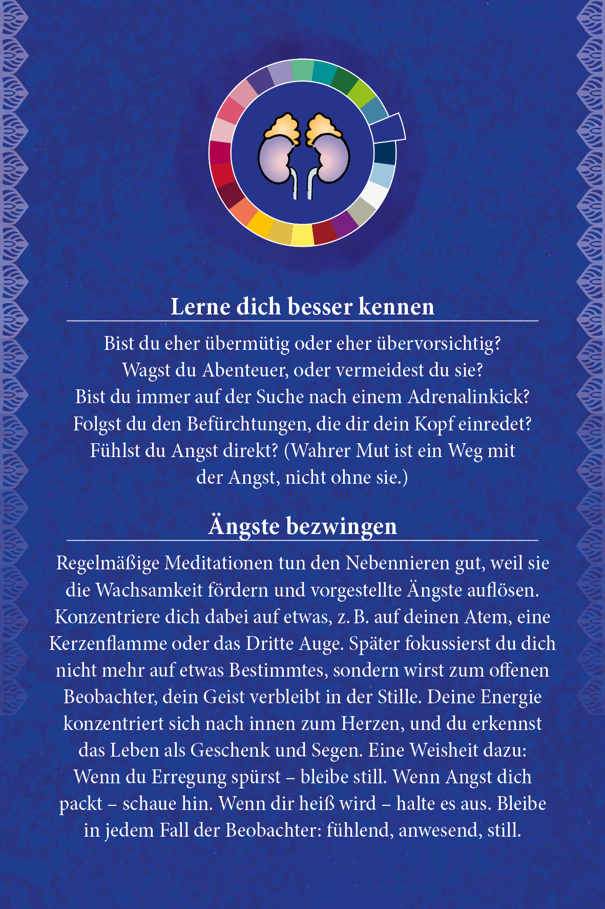 | Schlagworte | Arme • Bauchspeicheldrüse • Beine • Bewusstseinsentwicklung • Blase • Blockaden • Dickdarm • Dünndarm • Elvira Schneider • Emotionen • Energiefluss • Farbe • Fortpflanzungsorgane • Gallenblase • Geschlechtsorgane • Gesundheit • Großhirn • Hals • Hara • Heilströmen • Heilung • Herz • Innere Organe • Jahresverlauf • Kleinhirn • Körperarbeit • Krafttier • Lebensenergie • Leber • Lunge • Magen • Maren Schmitt • Meditation • Milz • Mudra • Nebennieren • Nieren • Organe • Organkalender • Pons • Psyche • Ratgeber • Schirner • Schirner Verlag • Seele • Steißbein • Tibetan Pulsing • Traumata • Übung • Übungsbuch • Widerstände • Zellgedächtnis • Zunge • Zwölffingerdarm |