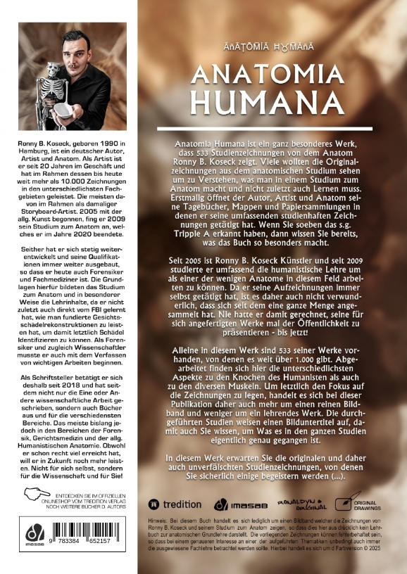 Ronny B. Koseck, der auch unter dem Künstlernamen Ronaldyn bekannt ist, wurde 1990 in Hamburg geboren, ist ein deutscher Autor, Artist und Anatom. Als Artist ist er seit 20 Jahren im Geschäft und hat im Rahmen dessen bis heute weit mehr als 10.000 Zeichnungen in den unterschiedlichsten Fachgebieten geleistet. Die meisten davon im Rahmen als damaliger Storyboard-Artist. 2005 mit der Kunst begonnen, fing er 2009 sein Studium zum Anatom an, welches er im Jahre 2020 beendete. Seither hat er sich stetig weiterentwickelt und seine Qualifikationen immer weiter ausgebaut, so dass er heute auch Forensiker und Fachmediziner ist. Beruflich bewegt sich der Autor nahezu weltweit in der hiesigen forensischen Medizin und sorgt mit seinen Arbeiten unter anderem für die Neueinführung von effizienteren Verfahren zur Verbrechensaufklärung. Inzwischen galt er in der Forensik auch als Fachmann wenn es um die Klärung zu Fragestellungen von Scharfer Gewalt (Hieb- und Stichwaffen), Gesichtsschädelrekonstruktionen, Strangulationen und der speziellen Methodik von Spurensicherungen am Leichnam geht. Seine bislang wichtigste forensische Arbeit und zugleich zweite Dissertation erreichte er über die sehr kleinteilig und fundierte Ausarbeitung zu Forensischen Betrachtungen bei Strangulationen, jene er mit vielen neuen Parametern angereichert hat. Jene Arbeit gilt in der Forensischen Medizin weltweit als absoluter Meilenstein, insbesondere durch die massive Ansammlung neuester Erkenntnisse und Auswertmethoden - wie unter anderem einem so genannten Tataktionsradius, den Strangulation Adjustment Cards oder auch ein Phasenmodell zur vergleichenden Anordnung wie zugleich Betrachtung / Auswertung von mentaler Stärke und Labilität bei suizidgefährdeten Personen, um nur einiges zu nennen. Bekannt ist darüber hinaus auch der von ihm entwickelte forensische Test DoHaiO, den er in seiner Funktion als Anatom entwickelt hat. Im gleichen Ansatz zum DoHaiO-Test konnte er auch in einer umfangreichen wissenschaftlichen Arbeit darlegen, dass angenommene Links-, Rechtshänderhypothesen völlig überholt sind und nichts mit der Links- / Rechtshändigkeit eines Menschen an sich zu tun haben, sondern mit anderen messbaren Parametern, die in Kilogrammstärken dargelegt werden (...). Geschrieben hat er seit 2022 einige Bücher, welche sich meistens auf Sachbuchbereiche bezogen. Mittlerweile verfasst er auch gesellschaftliche Themen in mehrteiligen Romanen um dezent auf gesellschaftliche Probleme hinzuweisen.