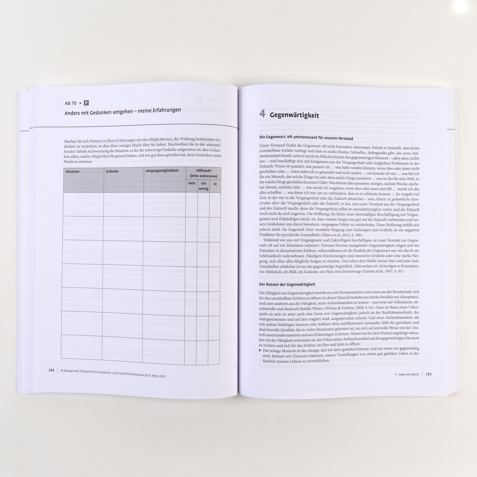 »Die kurze Einführung in das theoretische Konzept von ACT am Anfang des Buches sowie die beigefügten Erklärungen zu den Anwendungsmöglichkeiten der jeweiligen Übungen nach jedem Themenblock machen die Therapie-Tools für einen breiten Anwenderkreis, auch ohne umfangreiche Vorkenntnisse von ACT, gut in der therapeutischen Arbeit einsetzbar.« Psychologie in Österreich