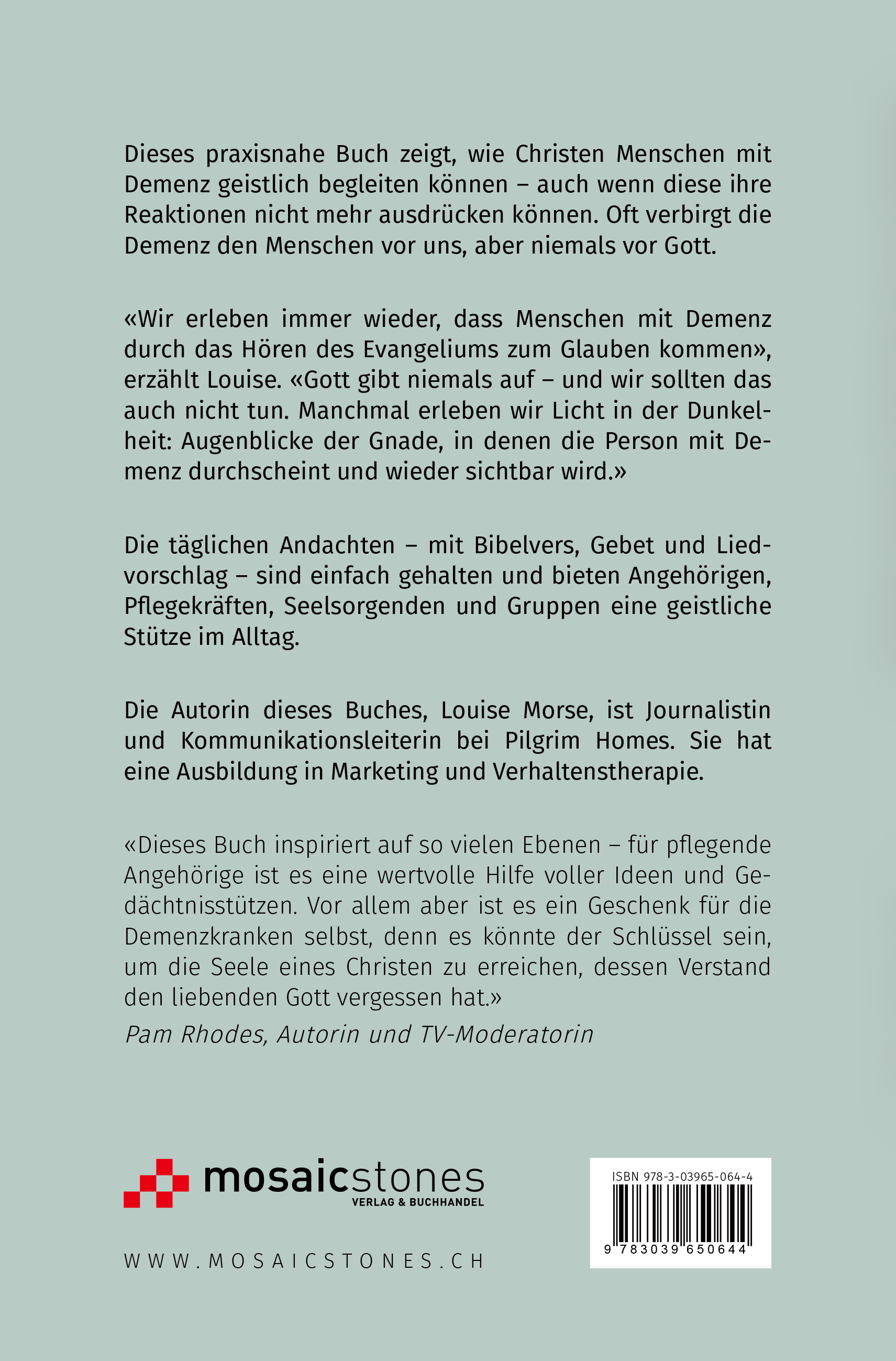 | Schlagworte | Anbetung • Andachten • Betreuungspersonen • Demenz • Erinnerung • Spiritualität |