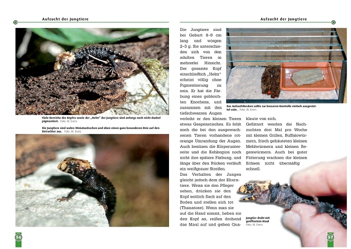 Eine Echse, die mit verblüffender Gewandtheit schwimmt, taucht und klettert, deren Äußeres den Betrachter an ein zierliches Krokodil erinnert und die sich zusätzlich durch Stacheln an Rumpf und Schwanz sowie wunderschöne, leuchtende orangerot umrandete Augen auszeichnet - all diese Eigenschaften und Merkmale reichen in der Regel aus, um das Herz eines jeden Terrarianers höherschlagen zu lassen. Art für Art stellen Ihnen die Bücher dieser Reihe die beliebtesten Terrarientiere vor. Jeder Band bietet Ihnen detaillierte, praxisnahe Pflegeanleitungen und Sie finden alle Informationen, die Sie brauchen, um Ihre Tiere erfolgreich zu vermehren. Alle wichtigen Fragen von der erforderlichen Beckengröße über die Terrarieneinrichtung, die technische Ausstattung, die artgerechte Ernährung bis zur Vorbeugung von Krankheiten werden mit zahlreichen Tricks und Kniffen beantwortet. Erfahrene, langjährige Züchter verraten, wie Sie die Tiere zur Fortpflanzung bewegen und die Jungtiere gesund aufziehen können.Das alles durchgängig farbig, großzügig bebildert und attraktiv gestaltet nur über Ihr Terrarientier - Art für Art.