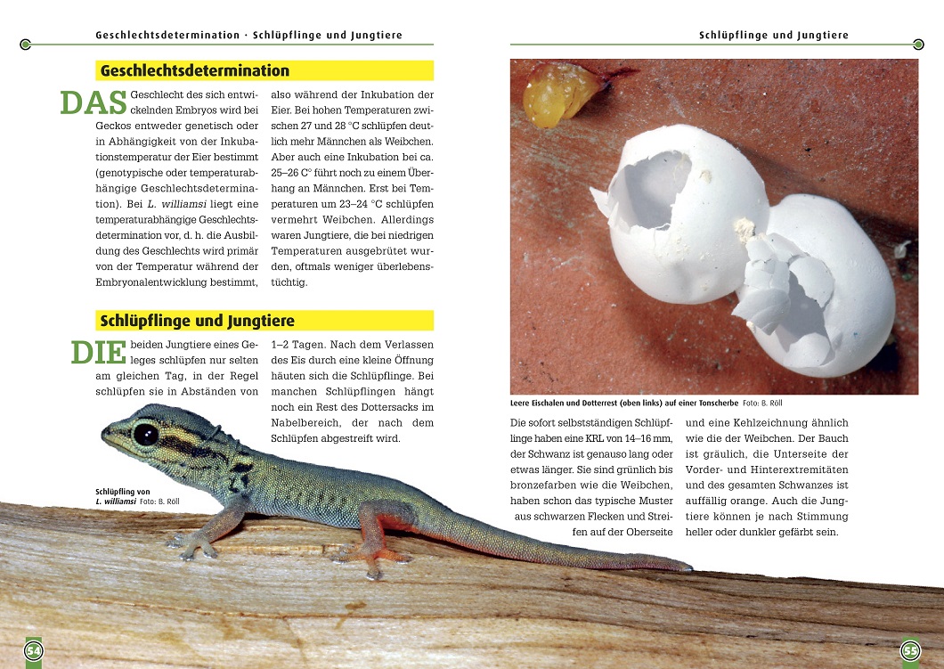 Beate Röll ist promovierte Diplom-Biologin und hat lange Jahre an Themen vor allem aus der Physiologie, Morphologie und Biologie der Geckos gearbeitet. Zurzeit unterrichtet sie als Privatdozentin an der Stiftung Tierärztliche Hochschule Hannover, u. a. mit einer eigenen Vorlesung „Biologie der Reptilien“. Privat hält sie seit über zwanzig Jahren Geckos, vor allem Zwerggeckos aus der Gattung Lygodactylus.