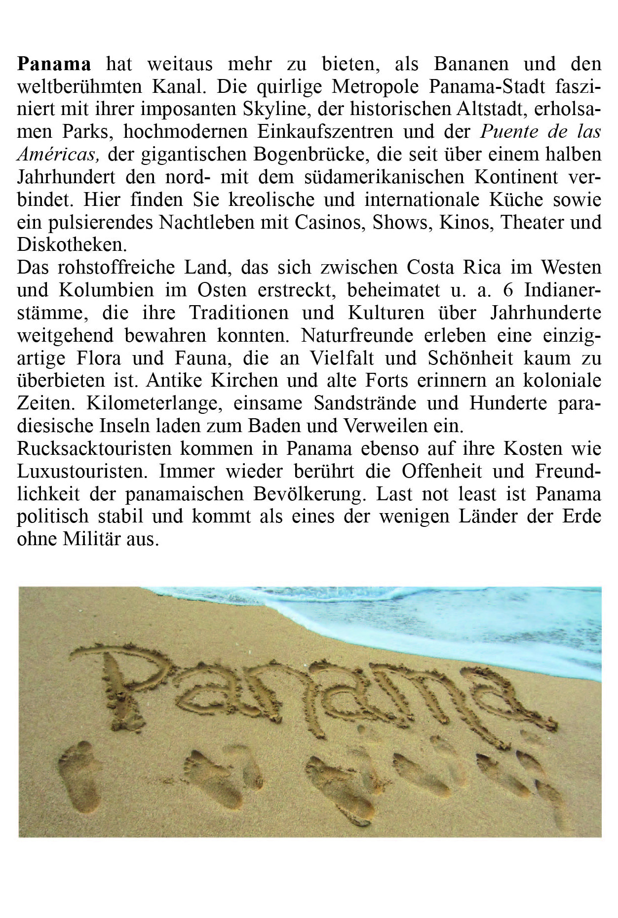 | Schlagworte | Bocas del Toro • Bocas del Torro • Colón • David • Embera • Guna • Kuna • Ngöbe Bugle • Panama • Panamá • Panama City • Panamakanal • Panama Kanal • Panama; Reiseführer • Panama Stadt • Puente de las Americas |
