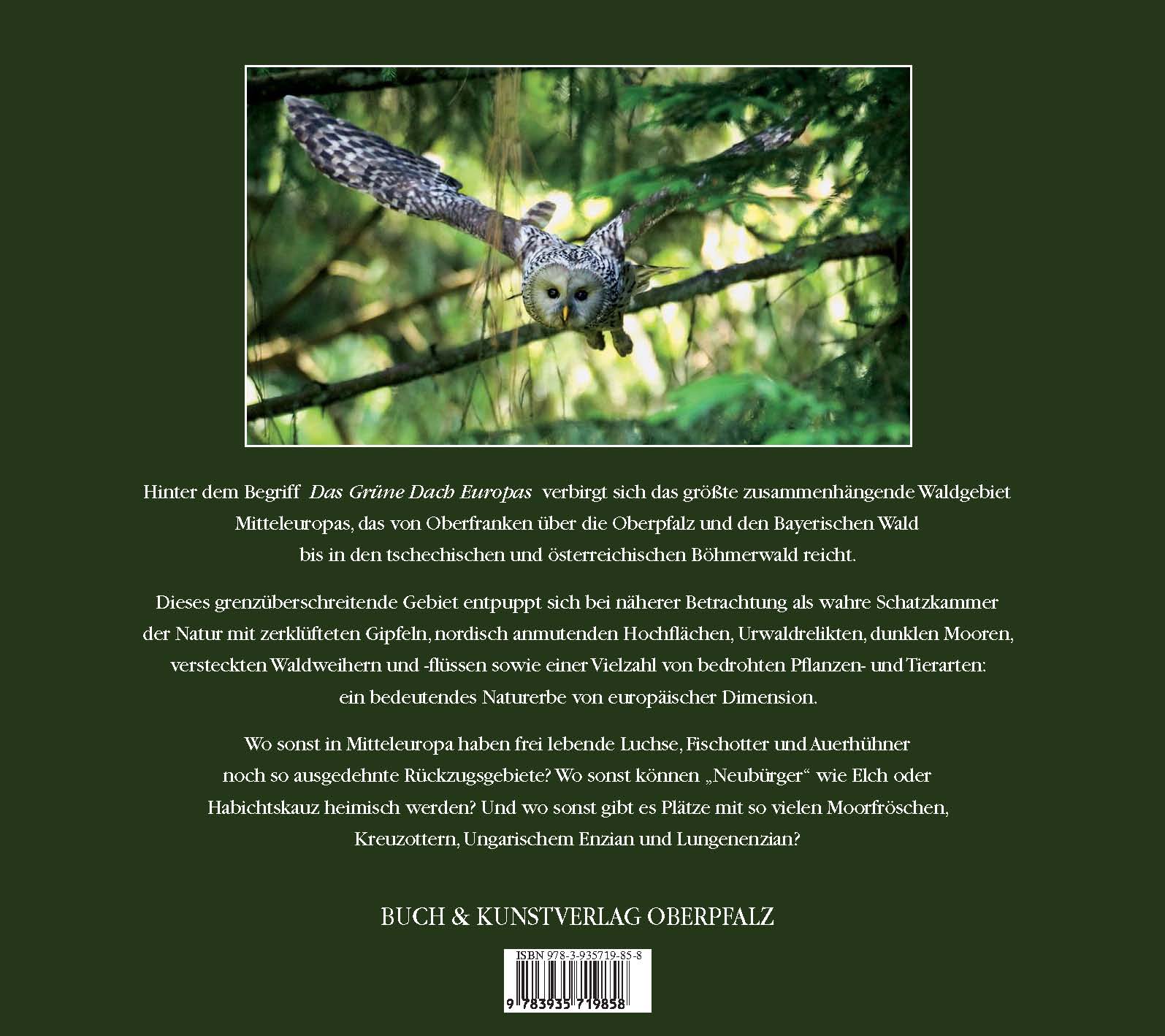 Hinter dem Begriff "Das Grüne Dach Europas" verbirgt sich das größte zusammenhängende Waldgebiet Mitteleuropas, das sich von Oberfranken über die Oberpfalz, Niederbayern und Böhmen bis nach Österreich erstreckt. Dieses grenzüberschreitende Gebiet entpuppt sich bei näherer Betachtung als wahre Schatzkammer der Natur mit zerklüfteten Gipfeln, nordisch anmutenden Hochflächen, Urwaldrelikten, dunklen Mooren, Weihern sowie einer Vielzahl von bedrohten Pflanzen- und Tierarten. Auerhahn, Luchs, Schwarzstorch, Wildkatze, Fisch- und Seeadler sowie viele andere Tiere und auch seltene Pflanzen finden hier einen intakten Lebensraum. Natur- und Landschaftsfotograf Berndt Fischer war jahrelang unter dem "Grünen Dach" unterwegs und hat dabei faszinierende Fotos geschossen, die dieses grüne Band, das der Goldsteig von Nord nach Süd durchquert von einer ganz neuen Seite zeigen. Er entführt in dem neuen Bildband aus dem Buch & Kunstverlag Oberpfalz in ein einzigartiges Naturparadies im Herzen Europas. Auf 144 Seiten stellt er mit rund 200 Bildern eine wilde Natur vor, wie man sie so auf dem alten Kontinent nur noch selten findet. Dabei wirft er auch die Frage auf, wie wild die Natur im Frankenwald, im Fichtelgebirge, im Steinwald, im Oberpfälzer Wald, im Bayerischen Wald, im Böhmerwald und im Österreichischen Mühlviertel noch sein darf. Ein faszinierendes Buch zum Schauen, Nachdenken und Staunen.