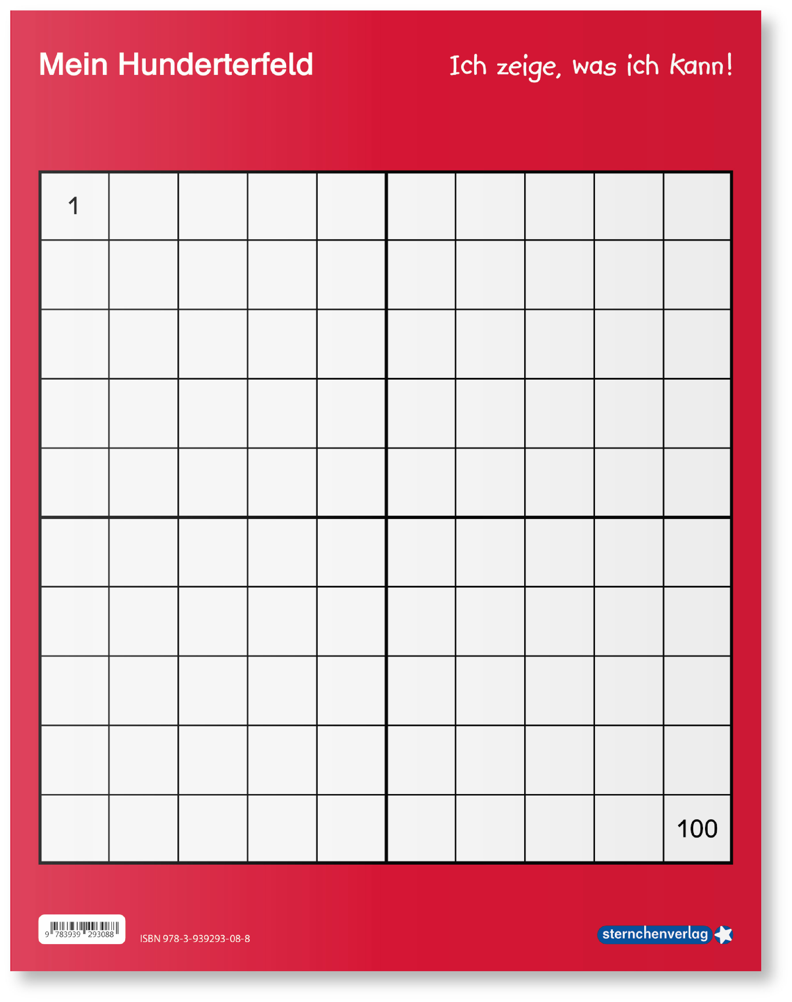 100er Feld im großen Format, trocken abwischbar ohne zu schmieren und ohne Farbrückstände für die 2. Klasse