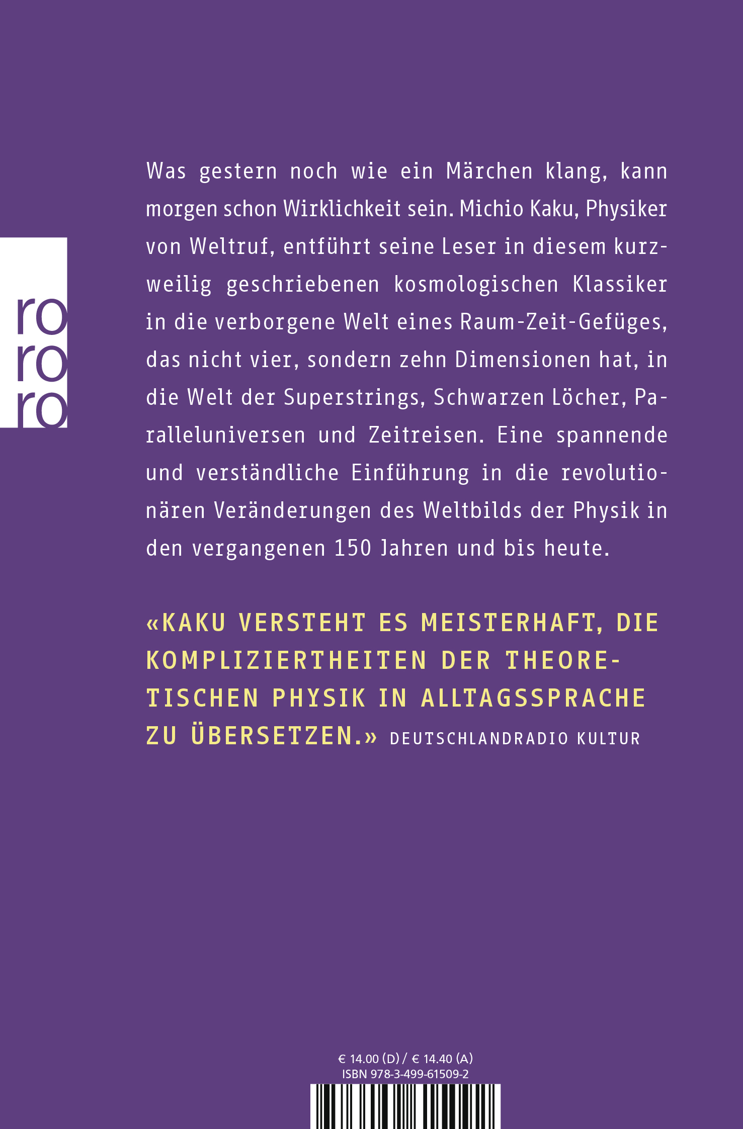 Kaku versteht es meisterhaft, die Kompliziertheit der theoretischen Physik in Alltagssprache zu übersetzen. Deutschlandradio Kultur