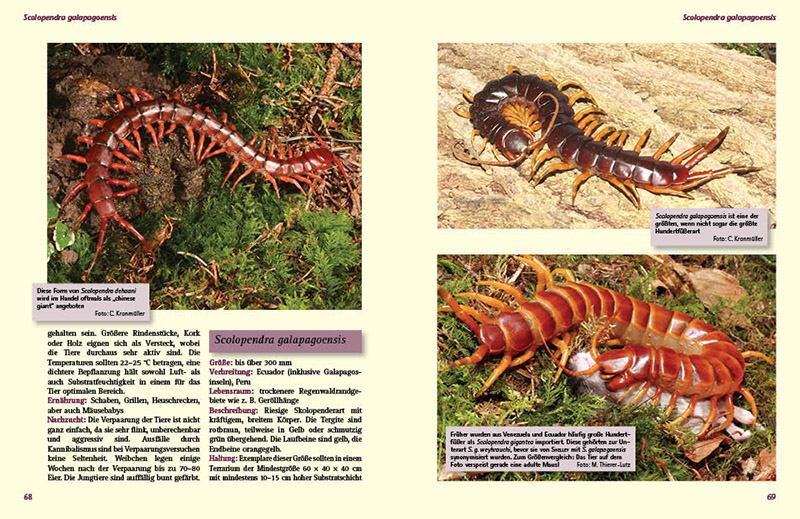 | Schlagworte | Akymnopellis • Cormocephalus • Ethmostigmus • Gliederfüßer • Hundertfüßer • Otostigmus • Rhysida • Scolopocryptops • Skolopender • Skolopendra • Terraristik • Terrariumhaltung • Tracheentiere |