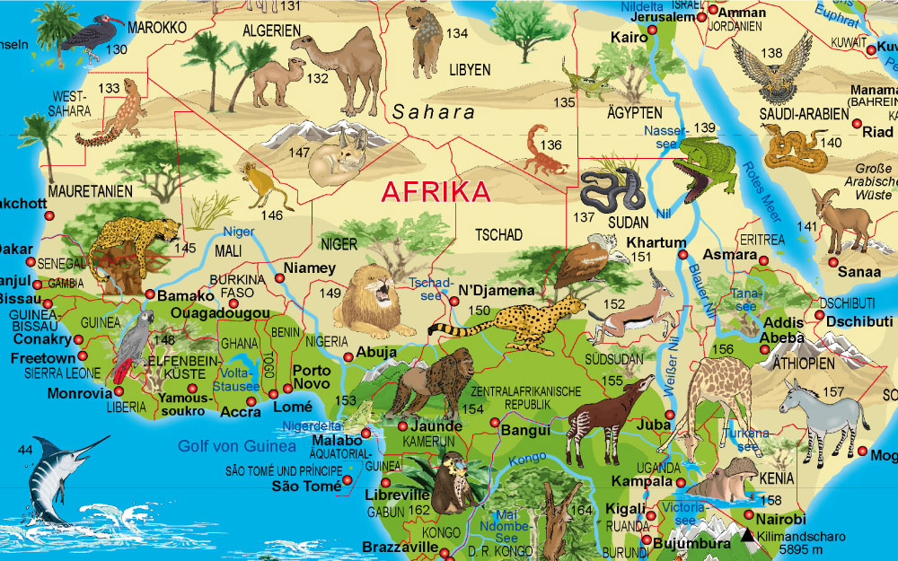 Illustrierte Weltkarte Tiere für kleine und große Entdecker von 5 bis 99