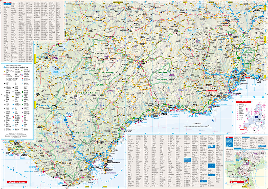 1:250 000 +++ Granada, Málaga, Marbella, Ronda, Time Zones