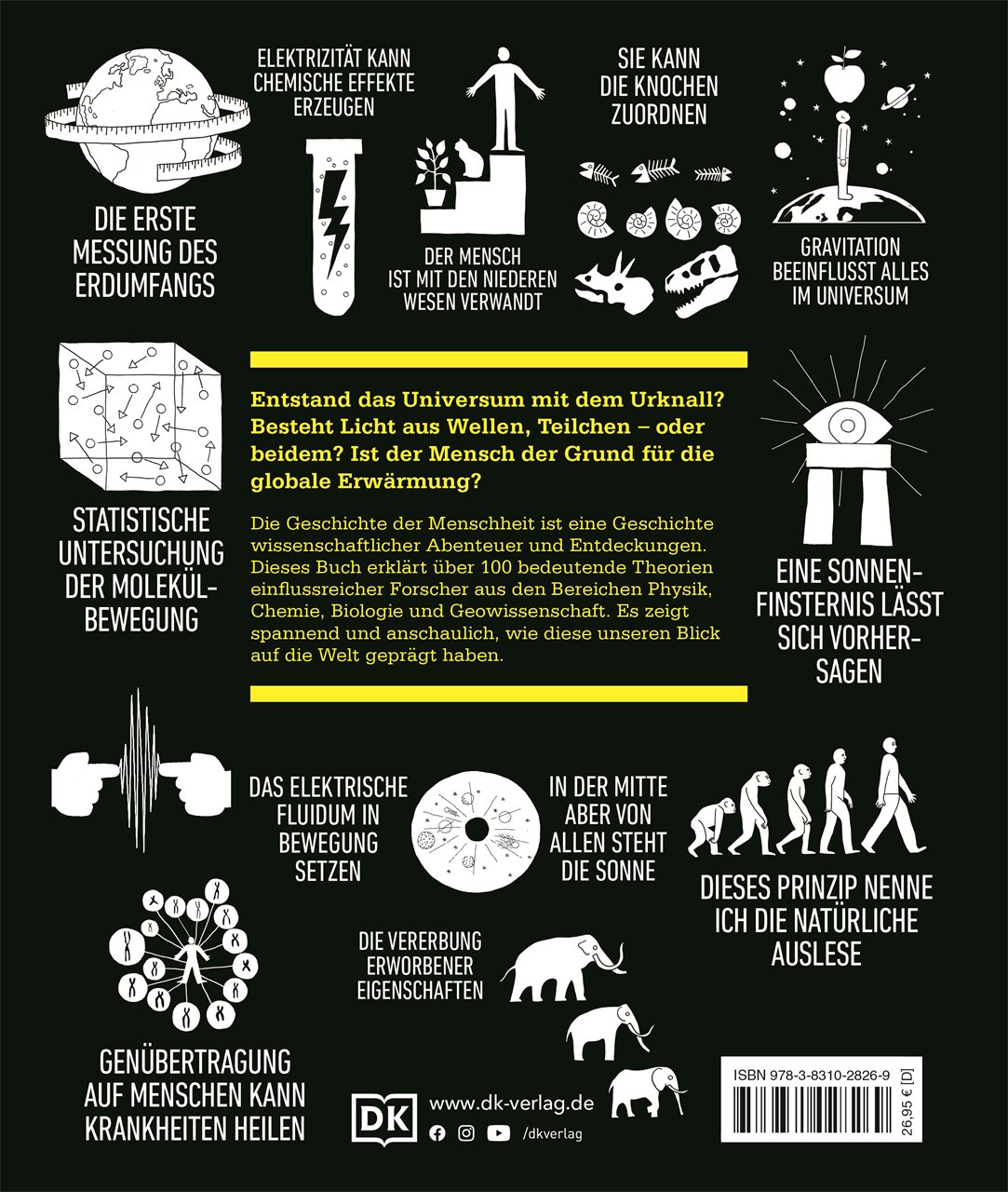 Von ihren Anfängen 600 v. Chr. über die Erweiterung unseres Horizonts von 1700 bis 1800 bis hin zu vertieften neuen Erkenntnissen der letzten 50 Jahre werden die wichtigsten Theorien der Physik, Chemie, Biologie und Geowissenschaft anschaulich vorgestellt.