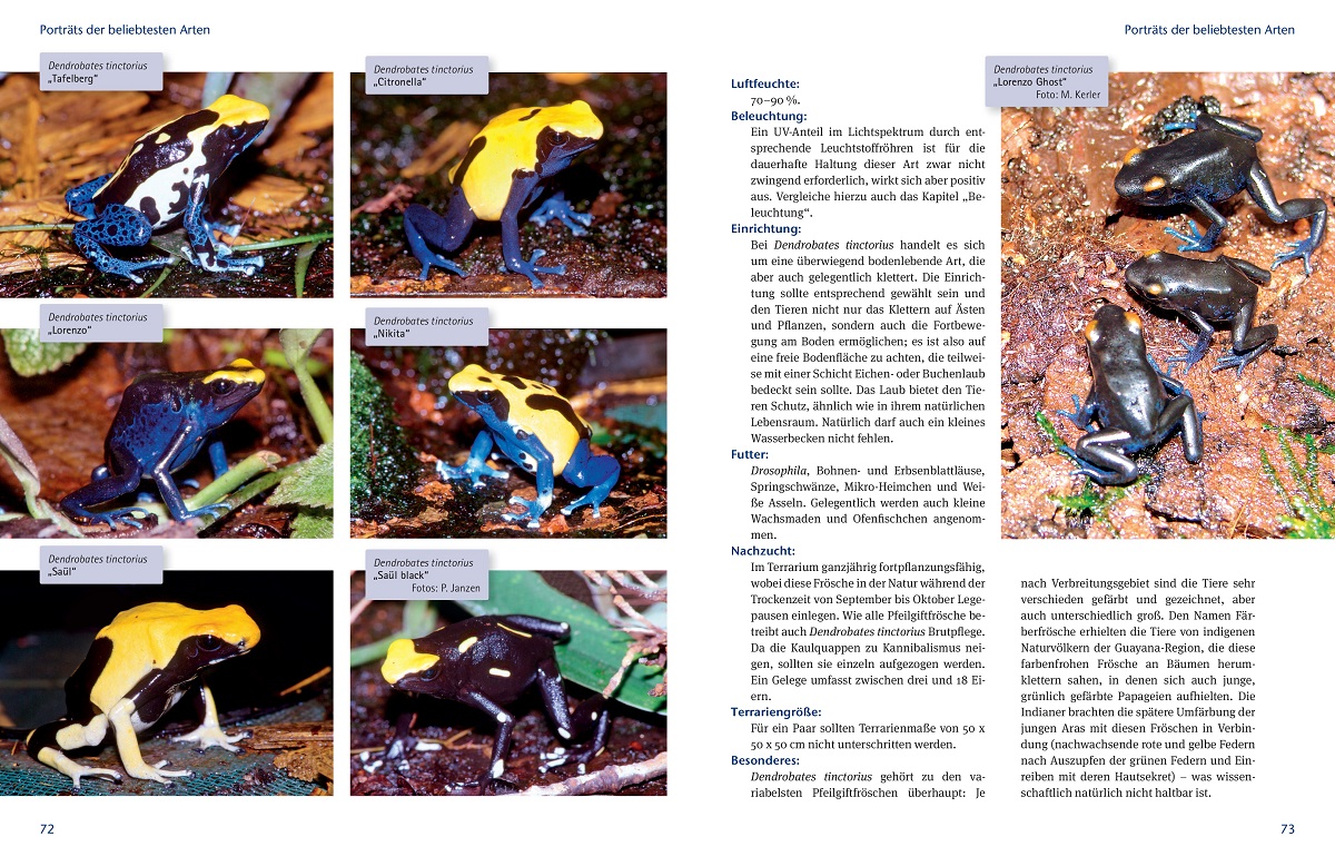 | Schlagworte | Adelphobates • Ameerega • Amphibienhaltung • Amphibienzucht • anura • Baumsteigerfrösche • Baumsteigeroder • Blasrohrpfeil • Dendrobates • Dendrobatidae • Epipedobates • Färberfrosch • Farbfrösche • Froschart • Frösche • Froschhaltung • Froschzucht • Gefahrtierhaltung • Giftfrosch • Giftiges Tier • Gifttier • Gifttierhaltung • Oophaga • Pfeilgiftfrosch • Pfeilgiftfroschterrarium • Phyllobates • Ranitomeya • Reptilien und Amphibien als Haustiere • Terrarientier • Terraristik • Terrarium • Tierwelt: Reptilien und Amphibien: Sachbuch • Zoologie: Amphibien und Reptilien (Herpetologie) |