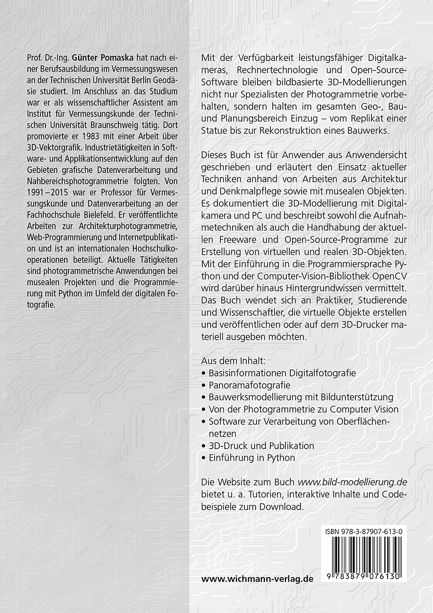 Prof. Dr.-Ing. Günter Pomaska war Professor für Vermessungskunde und Datenverarbeitung an der Fachhochschule Bielefeld. Aktuelle Tätigkeitsfelder sind Photogrammetrie und Programmierung.