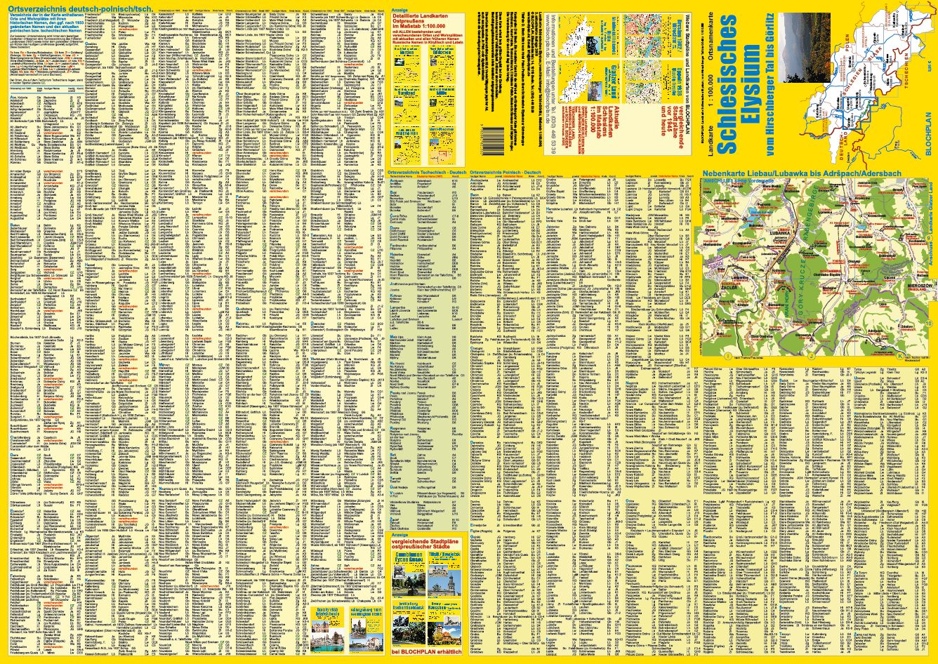 Auf der Rückseite enthält die Karte Ortsverzeichnisse in Deutsch-Polnisch, Polnisch-Deutsch und Tschechisch-Deutsch.